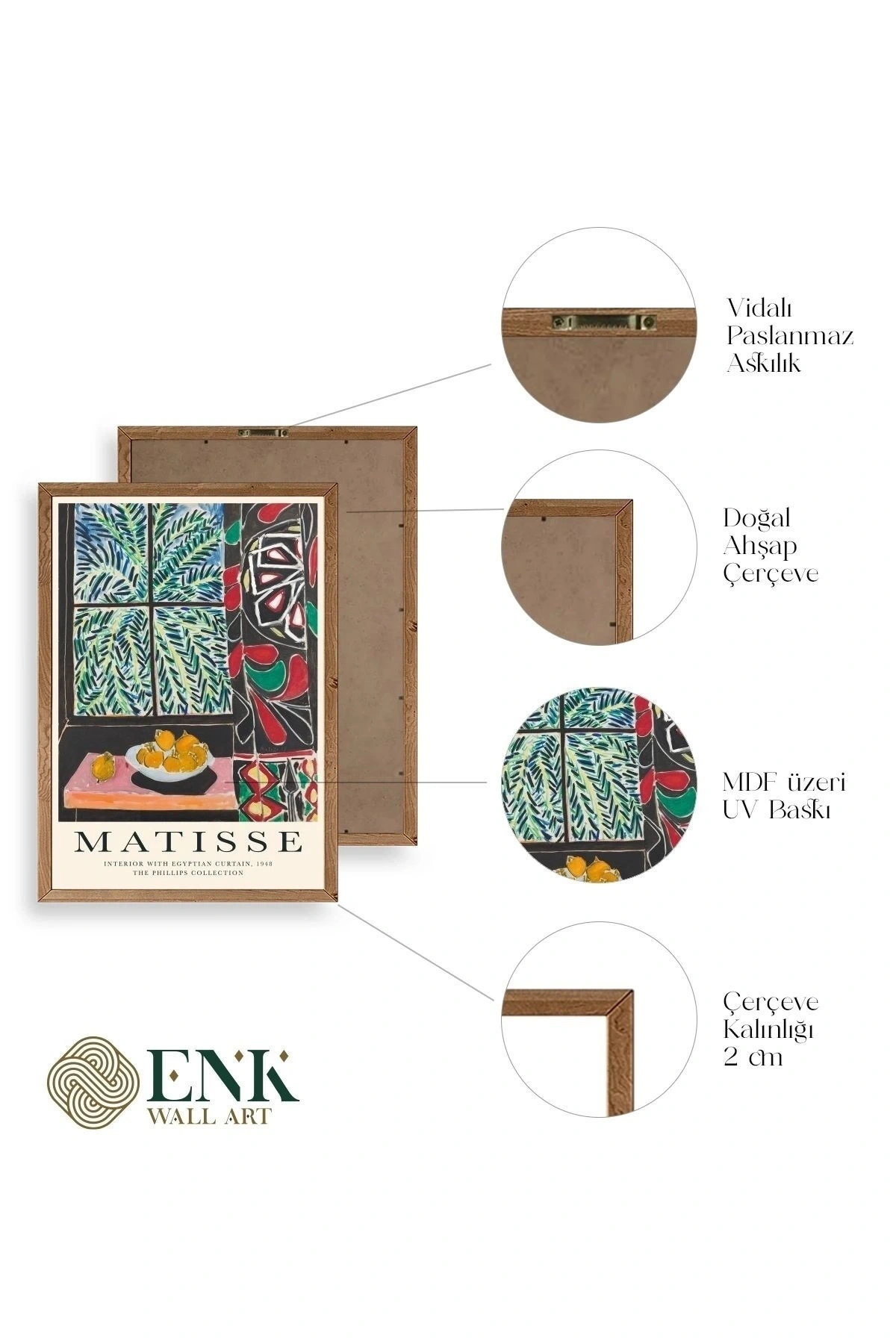 Tablolarımız gerçek ahşap çerçevelidir, çerçeve görünümlü değildir. ; ENK Wall Art Olarak Ahşap Çerçeveli Tablolar Üretiyoruz. ; Tablolarımız tek parça, 3 Parça, 5 Parça ve daha çok kategoride tasarımcılarımız tarafından ev ve ofisleriniz duvarları süslemek için tasarlanmaktadır. ; Ahşap Çerçeveli Duvar Tabloları ile yaşam alanlarınıza yepyeni bir görünüm kazandırın. ; Yıllarca dayanacağından emin olduğumuz sağlam çerçevelere sahip yüksek kaliteli ahşaptan üretilmiştir. ; İster bir köşeyi süslemek isteyin, ister evinizi yenilemek , bu ahşap tablolar herhangi bir yaşam alanına stil ve işlev getirecektir. ; Duvara kolay bir şekilde monte edilir. ; Uzun ömürlü kullanım için sağlam ahşap çerçeveden yapılmış, dayanıklı ve güçlü. ; Duvara monte edilebilir tasarımı, yaşam alanlarında veya yatak odalarında duvara kolayca asılmasını sağlar. ; Pürüzsüz üst yüzeyi temiz kalmayı kolaylaştırır. ; Herhangi bir stile uyacak şekilde çeşitli renklerde gelir. ; Kolay yeniden düzenleme için hafif ve portatif. ; Küçük oturma odaları veya dar alanlar için mükemmel boyut. ; Eve taşınma hediyesi olarak idealdir. ; Herhangi bir evin dekorunu süslemek için harika bir yol. ; Herhangi bir modern veya çağdaş iç tasarıma mükemmel bir katkı. ; Tablo içi 3 mm mdf (ahşap) malzeme üzeri uv baskıdır. ; Renkler canlı ve solma yapmaz. ; Kırılma, bükülme ve çizilmeye karşı dayanıklıdır.;