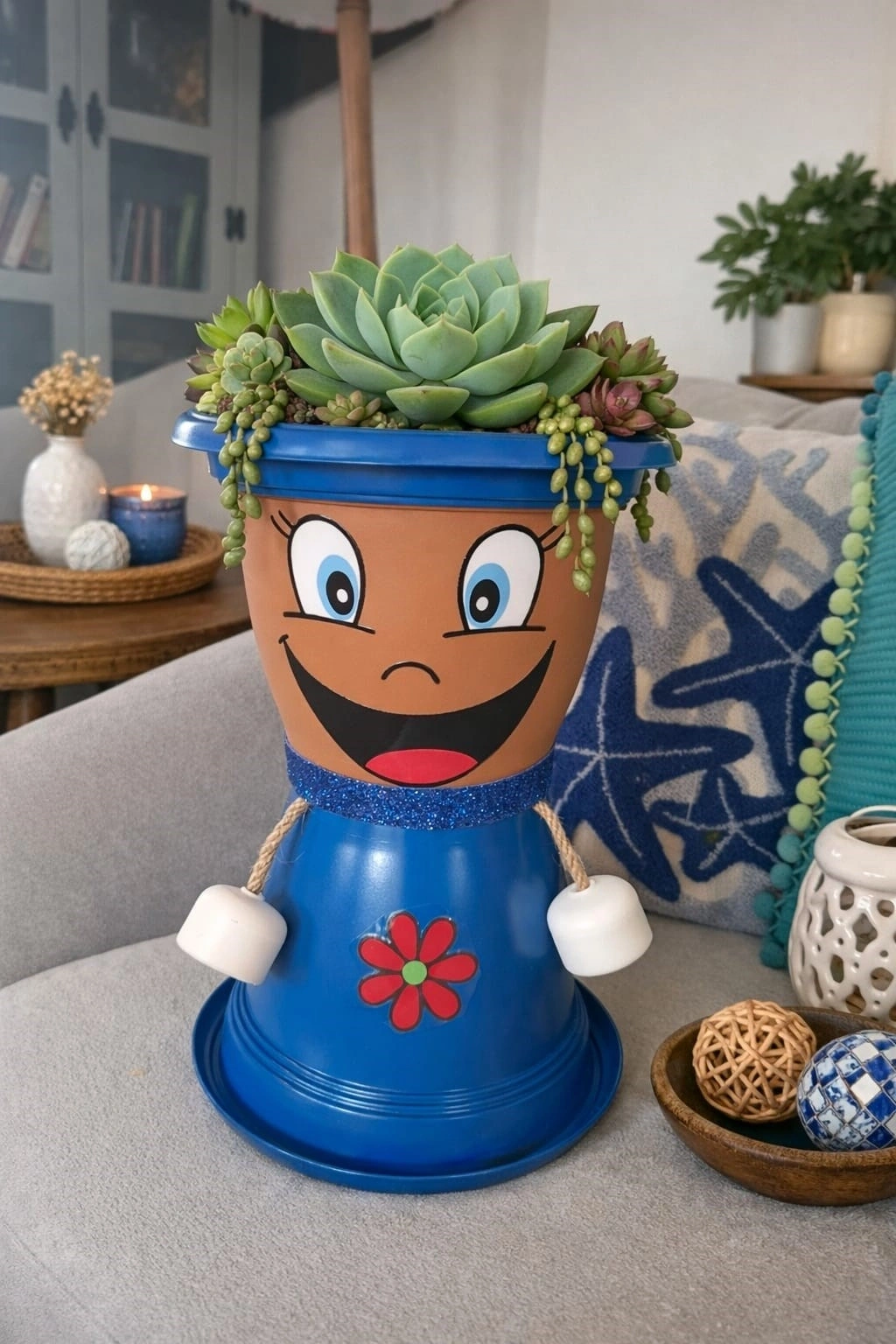 • ? Ürün AçıklamasıEvine Bodrum’un huzurunu ve neşesini getiren Mavişko ile tanış!bu dekoratif saksı, hem pencere kenarında hem bahçe merdiveninde hem de yazlık ev köşelerinde eğlenceli bir dokunuş yaratır.; ? Bodrum mavisi Detaylar? Tesbih sukulent görünümüyle Akdeniz enerjisi? Komik, pozitif ve dekoratif tasarım? Tabak altına monte edilmiştir, sızdırma yapmaz.; ? Çiçeksiz gönderim yapılır.; Her biri kendine özgü bir karakter taşır.; İster evinin girişinde, ister pencerende dursun — Mavişko seni her sabah gülümsetir ?
