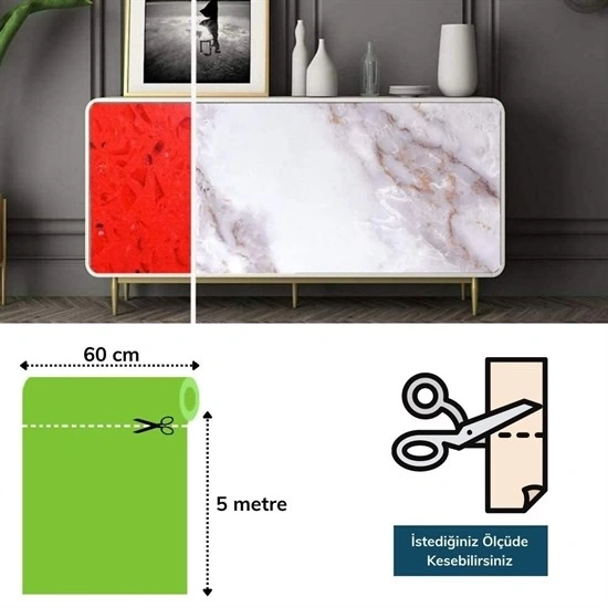 Mermer desenli yapışkanlı folyo ürünüyle birlikte evinizde şık ve modern bir görünüm sağlayabilirsiniz.