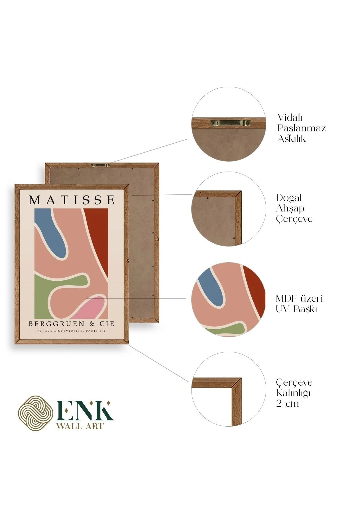 Tablolarımız gerçek ahşap çerçevelidir, çerçeve görünümlü değildir. ; ENK Wall Art Olarak Ahşap Çerçeveli Tablolar Üretiyoruz. ; Tablolarımız tek parça, 3 Parça, 5 Parça ve daha çok kategoride tasarımcılarımız tarafından ev ve ofisleriniz duvarları süslemek için tasarlanmaktadır. ; Ahşap Çerçeveli Duvar Tabloları ile yaşam alanlarınıza yepyeni bir görünüm kazandırın. ; Yıllarca dayanacağından emin olduğumuz sağlam çerçevelere sahip yüksek kaliteli ahşaptan üretilmiştir. ; İster bir köşeyi süslemek isteyin, ister evinizi yenilemek , bu ahşap tablolar herhangi bir yaşam alanına stil ve işlev getirecektir. ; Duvara kolay bir şekilde monte edilir. ; Uzun ömürlü kullanım için sağlam ahşap çerçeveden yapılmış, dayanıklı ve güçlü. ; Duvara monte edilebilir tasarımı, yaşam alanlarında veya yatak odalarında duvara kolayca asılmasını sağlar. ; Pürüzsüz üst yüzeyi temiz kalmayı kolaylaştırır. ; Herhangi bir stile uyacak şekilde çeşitli renklerde gelir. ; Kolay yeniden düzenleme için hafif ve portatif. ; Küçük oturma odaları veya dar alanlar için mükemmel boyut. ; Eve taşınma hediyesi olarak idealdir. ; Herhangi bir evin dekorunu süslemek için harika bir yol. ; Herhangi bir modern veya çağdaş iç tasarıma mükemmel bir katkı. ; Tablo içi 3 mm mdf (ahşap) malzeme üzeri uv baskıdır. ; Renkler canlı ve solma yapmaz. ; Kırılma, bükülme ve çizilmeye karşı dayanıklıdır.;