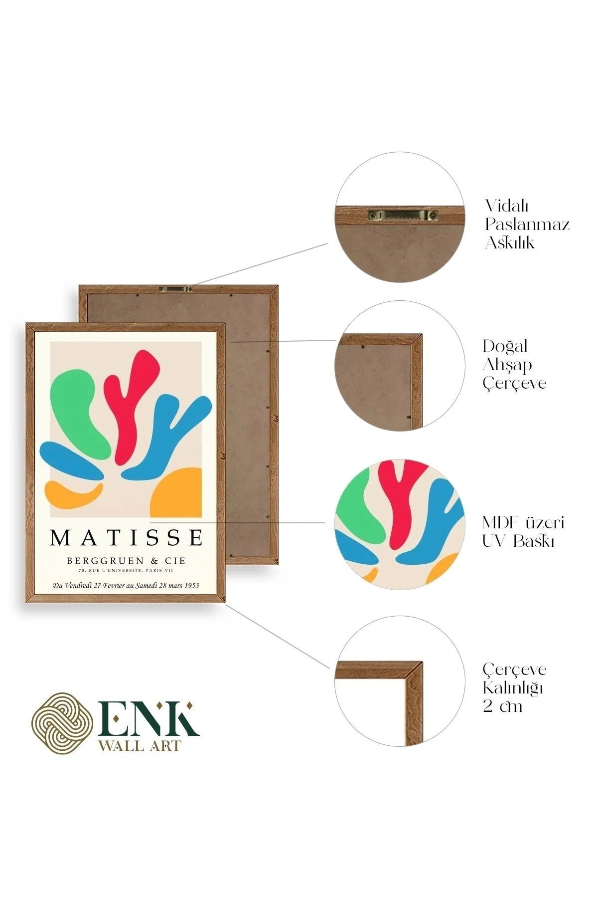 Tablolarımız gerçek ahşap çerçevelidir, çerçeve görünümlü değildir. ; ENK Wall Art Olarak Ahşap Çerçeveli Tablolar Üretiyoruz. ; Tablolarımız tek parça, 3 Parça, 5 Parça ve daha çok kategoride tasarımcılarımız tarafından ev ve ofisleriniz duvarları süslemek için tasarlanmaktadır. ; Ahşap Çerçeveli Duvar Tabloları ile yaşam alanlarınıza yepyeni bir görünüm kazandırın. ; Yıllarca dayanacağından emin olduğumuz sağlam çerçevelere sahip yüksek kaliteli ahşaptan üretilmiştir. ; İster bir köşeyi süslemek isteyin, ister evinizi yenilemek , bu ahşap tablolar herhangi bir yaşam alanına stil ve işlev getirecektir. ; Duvara kolay bir şekilde monte edilir. ; Uzun ömürlü kullanım için sağlam ahşap çerçeveden yapılmış, dayanıklı ve güçlü. ; Duvara monte edilebilir tasarımı, yaşam alanlarında veya yatak odalarında duvara kolayca asılmasını sağlar. ; Pürüzsüz üst yüzeyi temiz kalmayı kolaylaştırır. ; Herhangi bir stile uyacak şekilde çeşitli renklerde gelir. ; Kolay yeniden düzenleme için hafif ve portatif. ; Küçük oturma odaları veya dar alanlar için mükemmel boyut. ; Eve taşınma hediyesi olarak idealdir. ; Herhangi bir evin dekorunu süslemek için harika bir yol. ; Herhangi bir modern veya çağdaş iç tasarıma mükemmel bir katkı. ; Tablo içi 3 mm mdf (ahşap) malzeme üzeri uv baskıdır. ; Renkler canlı ve solma yapmaz. ; Kırılma, bükülme ve çizilmeye karşı dayanıklıdır.;