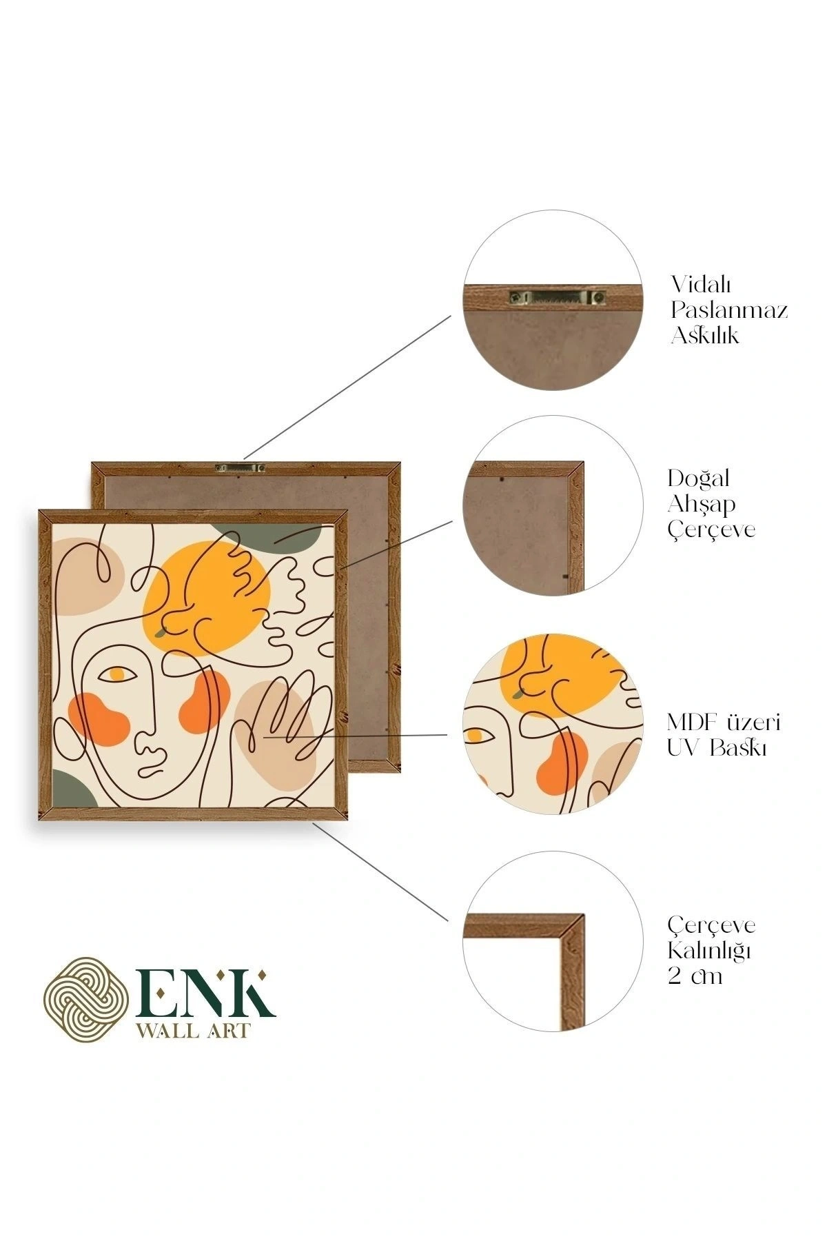 Tablolarımız gerçek ahşap çerçevelidir, çerçeve görünümlü değildir. ; ENK Wall Art Olarak Ahşap Çerçeveli Tablolar Üretiyoruz. ; Tablolarımız tek parça, 3 Parça, 5 Parça ve daha çok kategoride tasarımcılarımız tarafından ev ve ofisleriniz duvarları süslemek için tasarlanmaktadır. ; Ahşap Çerçeveli Duvar Tabloları ile yaşam alanlarınıza yepyeni bir görünüm kazandırın. ; Yıllarca dayanacağından emin olduğumuz sağlam çerçevelere sahip yüksek kaliteli ahşaptan üretilmiştir. ; İster bir köşeyi süslemek isteyin, ister evinizi yenilemek , bu ahşap tablolar herhangi bir yaşam alanına stil ve işlev getirecektir. ; Duvara kolay bir şekilde monte edilir. ; Uzun ömürlü kullanım için sağlam ahşap çerçeveden yapılmış, dayanıklı ve güçlü. ; Duvara monte edilebilir tasarımı, yaşam alanlarında veya yatak odalarında duvara kolayca asılmasını sağlar. ; Pürüzsüz üst yüzeyi temiz kalmayı kolaylaştırır. ; Herhangi bir stile uyacak şekilde çeşitli renklerde gelir. ; Kolay yeniden düzenleme için hafif ve portatif. ; Küçük oturma odaları veya dar alanlar için mükemmel boyut. ; Eve taşınma hediyesi olarak idealdir. ; Herhangi bir evin dekorunu süslemek için harika bir yol. ; Herhangi bir modern veya çağdaş iç tasarıma mükemmel bir katkı. ; Tablo içi 3 mm mdf (ahşap) malzeme üzeri uv baskıdır. ; Renkler canlı ve solma yapmaz. ; Kırılma, bükülme ve çizilmeye karşı dayanıklıdır.;