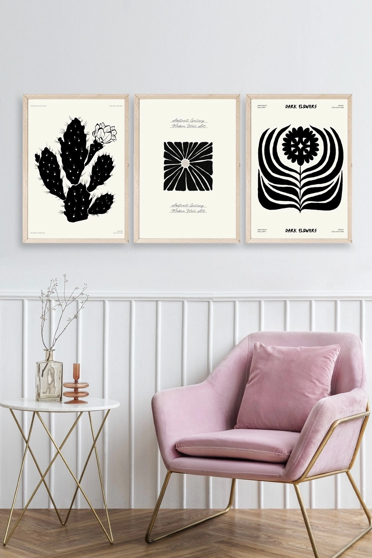 Modern Üçlü Ahşap Çerçeveli Tablo 23 x 30