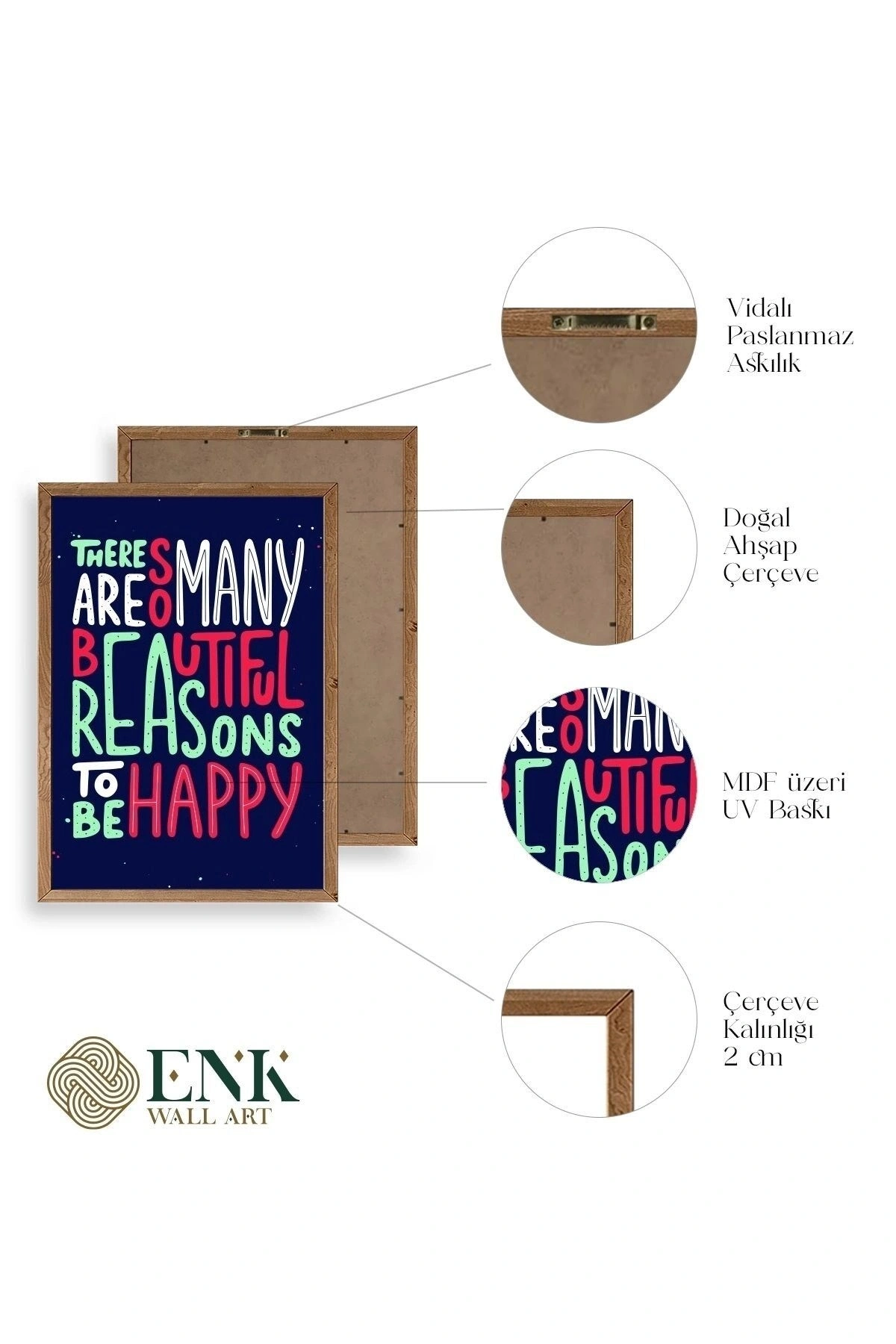 Tablolarımız gerçek ahşap çerçevelidir, çerçeve görünümlü değildir. ; ENK Wall Art Olarak Ahşap Çerçeveli Tablolar Üretiyoruz. ; Tablolarımız tek parça, 3 Parça, 5 Parça ve daha çok kategoride tasarımcılarımız tarafından ev ve ofisleriniz duvarları süslemek için tasarlanmaktadır. ; Ahşap Çerçeveli Duvar Tabloları ile yaşam alanlarınıza yepyeni bir görünüm kazandırın. ; Yıllarca dayanacağından emin olduğumuz sağlam çerçevelere sahip yüksek kaliteli ahşaptan üretilmiştir. ; İster bir köşeyi süslemek isteyin, ister evinizi yenilemek , bu ahşap tablolar herhangi bir yaşam alanına stil ve işlev getirecektir. ; Duvara kolay bir şekilde monte edilir. ; Uzun ömürlü kullanım için sağlam ahşap çerçeveden yapılmış, dayanıklı ve güçlü. ; Duvara monte edilebilir tasarımı, yaşam alanlarında veya yatak odalarında duvara kolayca asılmasını sağlar. ; Pürüzsüz üst yüzeyi temiz kalmayı kolaylaştırır. ; Herhangi bir stile uyacak şekilde çeşitli renklerde gelir. ; Kolay yeniden düzenleme için hafif ve portatif. ; Küçük oturma odaları veya dar alanlar için mükemmel boyut. ; Eve taşınma hediyesi olarak idealdir. ; Herhangi bir evin dekorunu süslemek için harika bir yol. ; Herhangi bir modern veya çağdaş iç tasarıma mükemmel bir katkı. ; Tablo içi 3 mm mdf (ahşap) malzeme üzeri uv baskıdır. ; Renkler canlı ve solma yapmaz. ; Kırılma, bükülme ve çizilmeye karşı dayanıklıdır.;