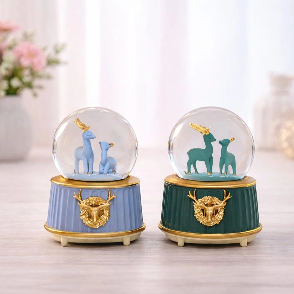 GEYİK FİGÜRLÜ ORTA BOY KAR KÜRESİÜrün ÖzellikleriEvinize veya ofisinize masalsı bir dokunuş katmaya ne dersiniz? Geyik Figürlü Müzikli ve Işıklı Orta Boy Kar Küresi, zarafeti ve huzur veren melodileri bir araya getiriyor. Kaliteli cam malzemeden üretilen küre kısmının içinde, doğanın asaletini temsil eden şık geyik figürleri yer almaktadır. Ürünün alt gövdesi dayanıklı sert polyester malzemeden imal edilmiş olup, gold detaylı geyik amblemiyle zenginleştirilmiştir. Alt kısmında bulunan açma-kapama düğmesiyle aktive olan dinlendirici müzik ve yumuşak ışık özelliği, özellikle akşam saatlerinde büyüleyici bir ambiyans oluşturur. Küreyi hafifçe salladığınızda uçuşan kar taneleri, geyiklerin masalsı dünyasına eşlik eder. Hem kendiniz için huzur verici bir masa aksesuarı hem de sevdikleriniz için unutulmaz bir hediye arıyorsanız, bu estetik kar küresi en şık tercihlerden biri olacaktır.Ürün Teknik ÖzellikleriÖzellikAçıklamaBoyutlar13 cm (Yükseklik) x 8 cm (Genişlik) x 8 cm (Derinlik)MalzemeÜst Kısım Kristal Cam / Alt Kısım Sert PolyesterFonksiyonlarDinlendirici Müzik ve LED Işık ÖzelliğiGüç Kaynağı3 Adet AAA Pil ile Çalışır (Piller pakete dahil değildir)Kullanım ŞekliManuel Sallama (Kar Taneleri Hareket Eder)Renk SeçeneğiGörseldeki Modellerden Karışık GönderilmektedirKullanım AlanıGece Lambası, Dekoratif Obje, HediyePaket İçeriği1 Adet Orta Boy Geyik Figürlü Kar Küresi