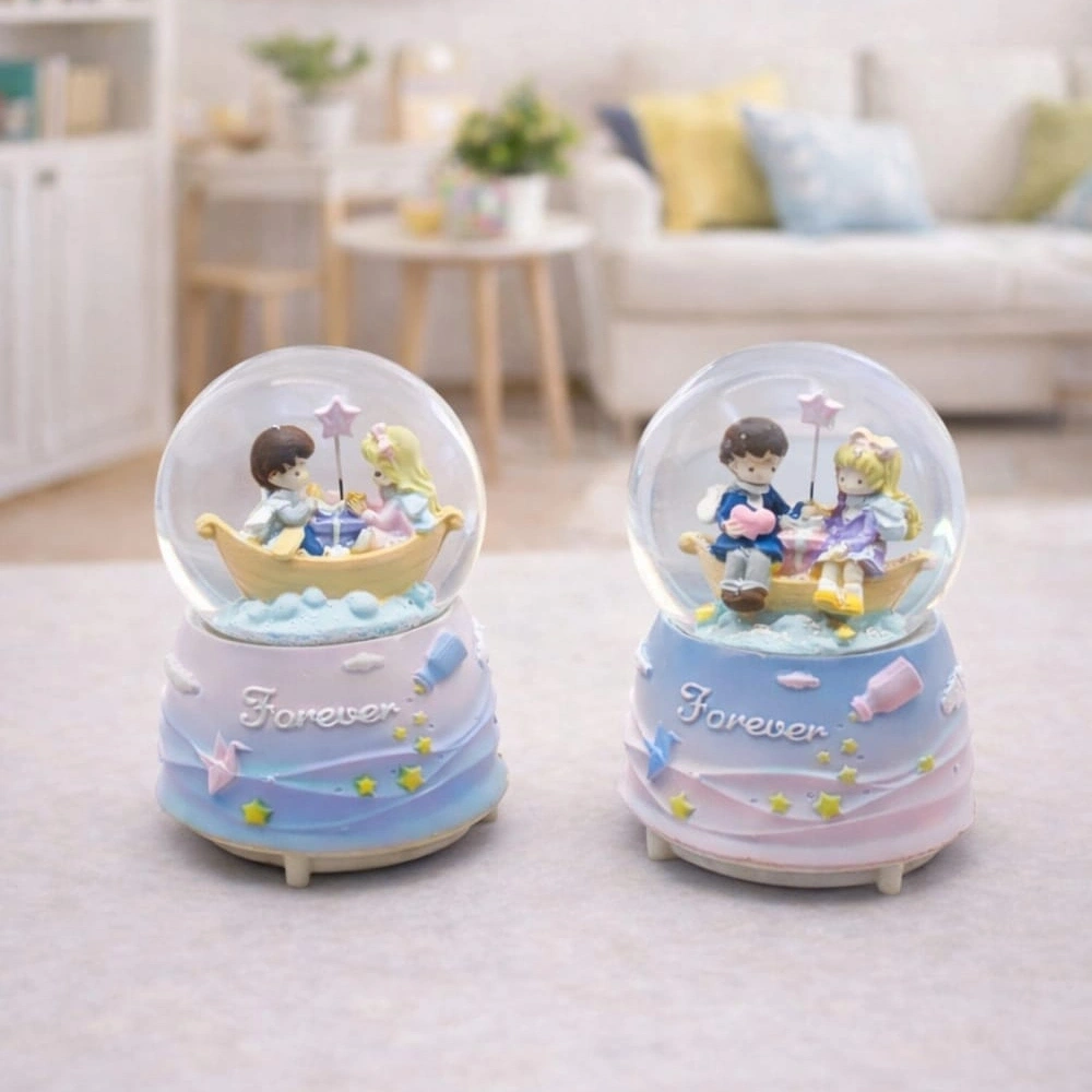 Orta Boy Müzikli Işıklı Romantik Sevgililer Temalı Kar Küresi