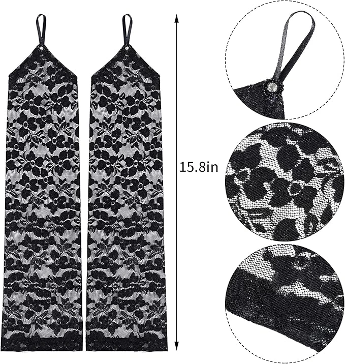 Parmak Askılı Zarif Gece Şıklığı Dantel Eldiven 40 cm
