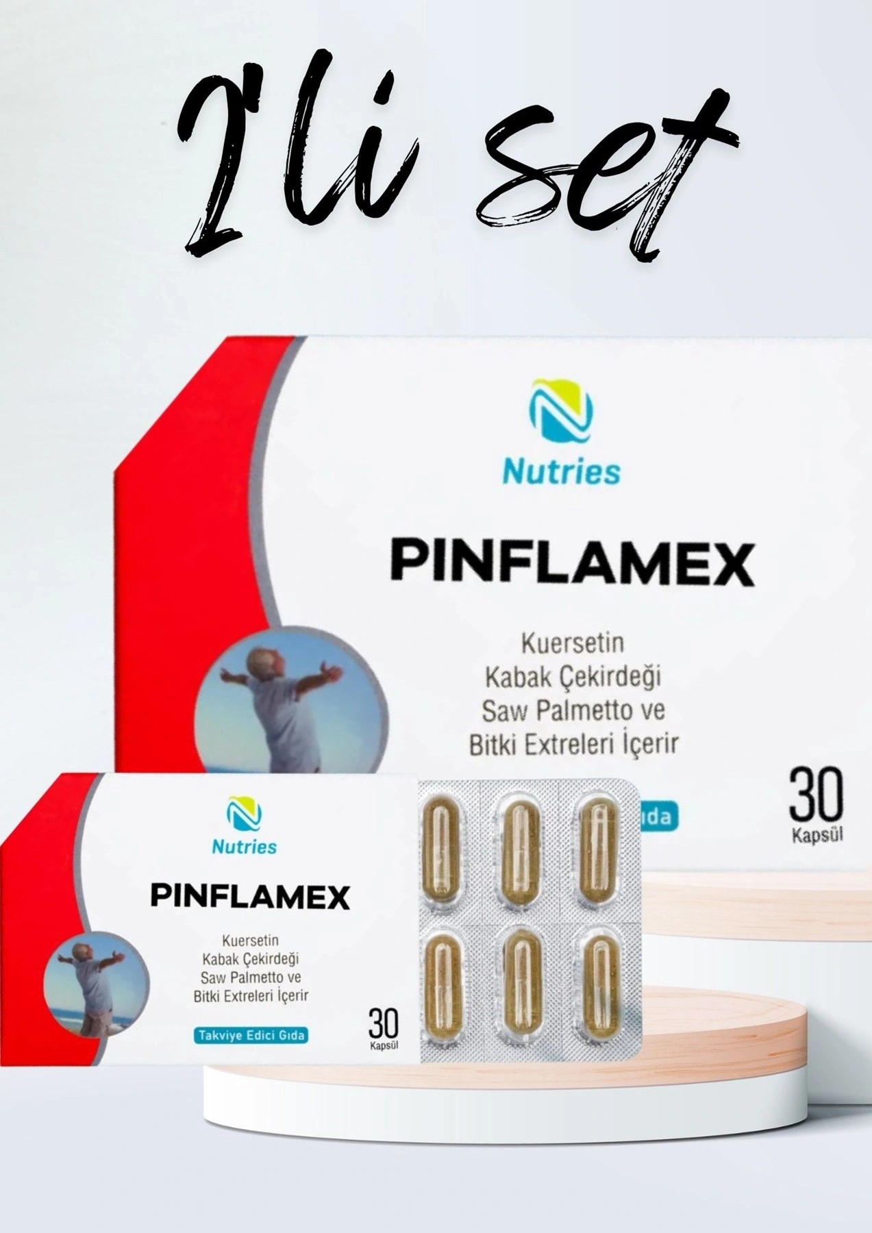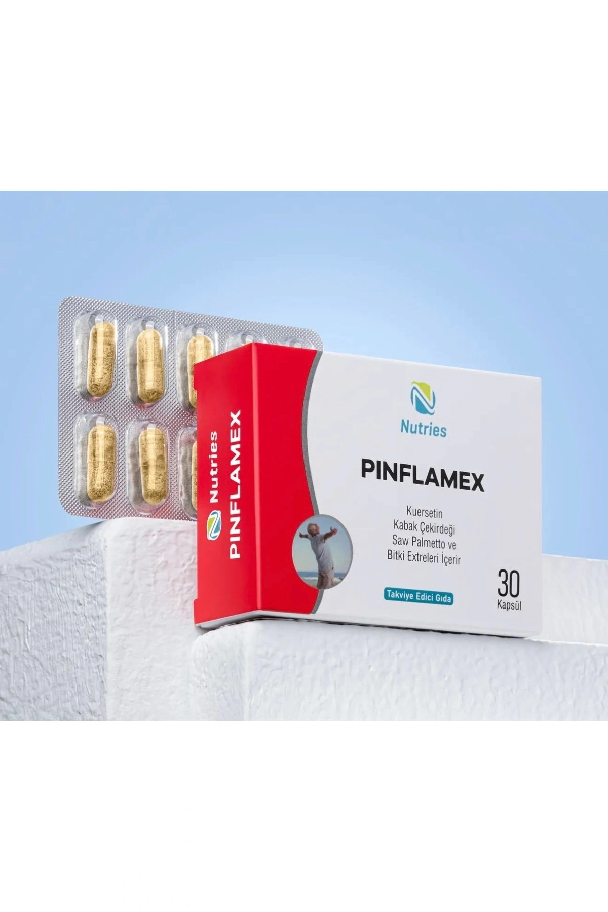 Nutries Pinflamex 30 Kapsül – Erkek Sağlığına Özel DestekNutries Pinflamex, kabak çekirdeği yağı, maca kökü, saw palmetto, quercetin, likopen, çinko, selenyum ve E vitamini gibi etkili bileşenleriyle formüle edilmiş zengin içerikli bir takviyedir. Bu özel formül, erkeklerin üreme sağlığını desteklemek ve genel sağlık durumlarını iyileştirmek amacıyla geliştirilmiştir.İçeriğindeki quercetin ve likopen, güçlü antioksidan özellikleri sayesinde hücreleri serbest radikallerin zararlı etkilerinden korurken, inflamasyonla mücadele eder. Bu sayede bağışıklık sistemine destek olur ve hücresel düzeyde koruma sağlar.Çinko ve selenyum, sperm üretimi ve kalitesini artırarak erkek üreme fonksiyonlarının sağlıklı şekilde devam etmesine yardımcı olur. Aynı zamanda hormonal denge üzerinde olumlu etkileri bulunur.Maca kökü ve saw palmetto, geleneksel olarak erkek sağlığını destekleyici etkileriyle bilinir. Özellikle enerji, dayanıklılık ve cinsel sağlık üzerinde olumlu katkılar sağlar.Nutries Pinflamex, hem üreme sağlığına destek olmak hem de güçlü antioksidan ve anti-inflamatuar etkileriyle erkeklerin genel sağlık ve zindeliğini korumaya yardımcı olmak için ideal bir tercihtir.