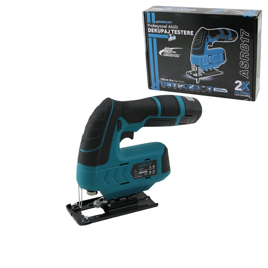 PROFESYONEL ŞARJLI DEKUPAJ TESTERE SUNTA KESME DEKOPAJ KADEMELİ HIZ AYAR 2 FREN SİSTEMİ 12V - 360W ASR-817 (5365)