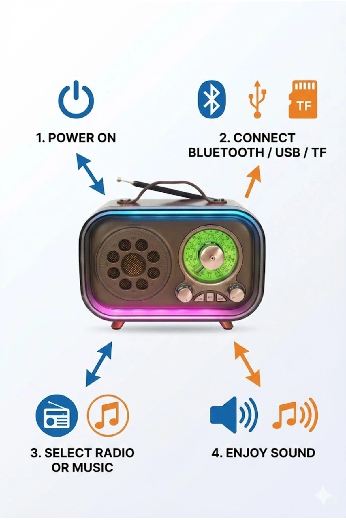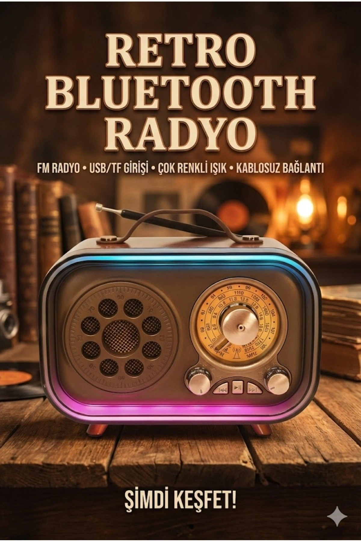 Nostaljik Retro Bluetooth Hoparlör - FM Radyo, USB ve Bluetooth Kablosuz Hoparlör
