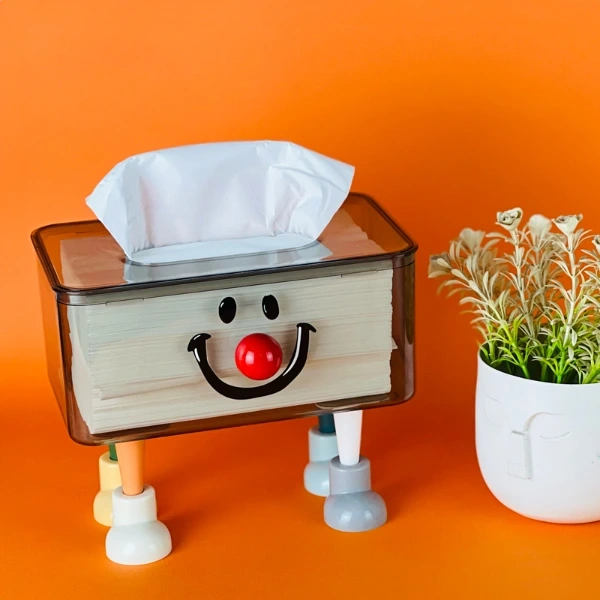 SEVİMLİ PEÇETELİKÜrün ÖzellikleriSevimli peçetelik, eğlenceli tasarımı ve şirin yüz ifadesiyle bulunduğu ortama neşe katar. Küçük kağıt peçeteleri düzenli bir şekilde saklamak için ideal olup, üst kısmında peçeteleri koymak için geniş bir alan bulunur. Alt kısmında ise renkli ayaklar yer alarak tasarıma hareketlilik kazandırır. Şeffaf plastik malzemeden üretilmiş olup, yüzü ve ayakları renkli plastik bileşenlerden oluşur. Evde, ofiste veya çocuk odalarında kullanılabilecek dekoratif ve fonksiyonel bir üründür. Peçeteleri pratik bir şekilde almayı sağlar ve aynı zamanda eğlenceli bir obje olarak dikkat çeker.Paket İçeriği1 adet Sevimli Peçetelik