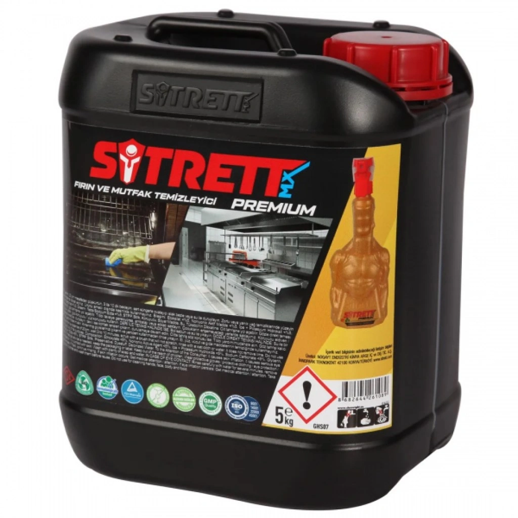 SİTRETT MX Fırın & Mutfak Temizleyici, mutfaklardaki en zorlu yağ, karbon, yanmış şeker ve yemek artıklarını temizlemek için özel olarak tasarlanmıştır. Konsantre formülü sayesinde direkt saf halde kullanılabildiği gibi, kirlilik durumuna göre su ile 100 kat’a kadar seyreltilebilir.