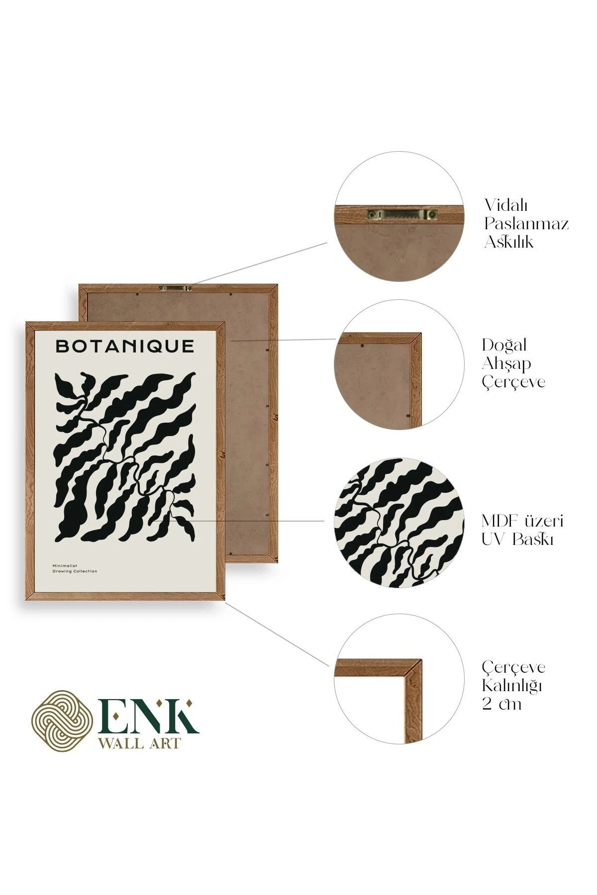 Tablolarımız gerçek ahşap çerçevelidir, çerçeve görünümlü değildir. ; ENK Wall Art Olarak Ahşap Çerçeveli Tablolar Üretiyoruz. ; Tablolarımız tek parça, 3 Parça, 5 Parça ve daha çok kategoride tasarımcılarımız tarafından ev ve ofisleriniz duvarları süslemek için tasarlanmaktadır. ; Ahşap Çerçeveli Duvar Tabloları ile yaşam alanlarınıza yepyeni bir görünüm kazandırın. ; Yıllarca dayanacağından emin olduğumuz sağlam çerçevelere sahip yüksek kaliteli ahşaptan üretilmiştir. ; İster bir köşeyi süslemek isteyin, ister evinizi yenilemek , bu ahşap tablolar herhangi bir yaşam alanına stil ve işlev getirecektir. ; Duvara kolay bir şekilde monte edilir. ; Uzun ömürlü kullanım için sağlam ahşap çerçeveden yapılmış, dayanıklı ve güçlü. ; Duvara monte edilebilir tasarımı, yaşam alanlarında veya yatak odalarında duvara kolayca asılmasını sağlar. ; Pürüzsüz üst yüzeyi temiz kalmayı kolaylaştırır. ; Herhangi bir stile uyacak şekilde çeşitli renklerde gelir. ; Kolay yeniden düzenleme için hafif ve portatif. ; Küçük oturma odaları veya dar alanlar için mükemmel boyut. ; Eve taşınma hediyesi olarak idealdir. ; Herhangi bir evin dekorunu süslemek için harika bir yol. ; Herhangi bir modern veya çağdaş iç tasarıma mükemmel bir katkı. ; Tablo içi 3 mm mdf (ahşap) malzeme üzeri uv baskıdır. ; Renkler canlı ve solma yapmaz. ; Kırılma, bükülme ve çizilmeye karşı dayanıklıdır.;