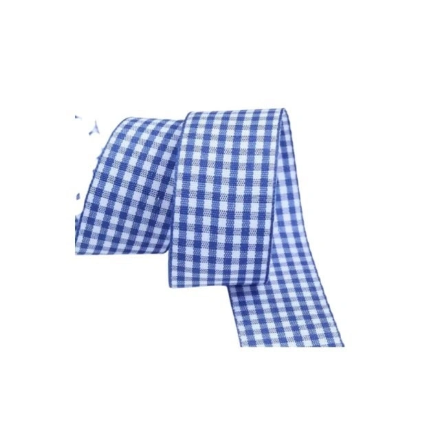 Tafta Ekoseli Kurdele 25 Mm İndigo 10 Metre