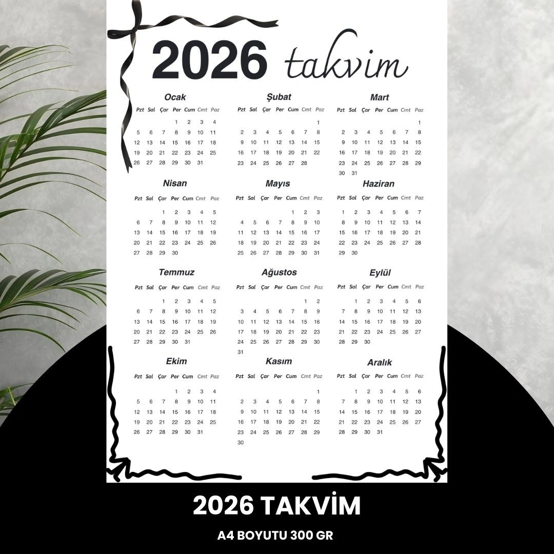 Takvim 2026 Premium A4 300 Gr Dijital Baskı Siyah Kurdele