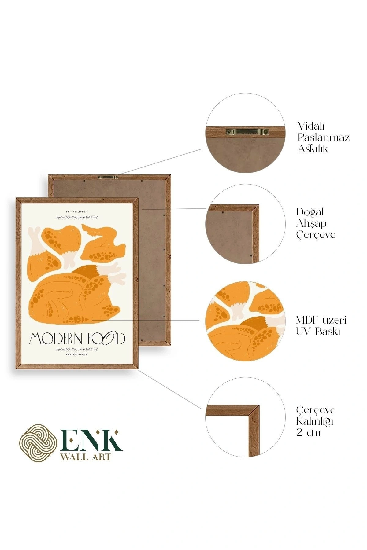 Tablolarımız gerçek ahşap çerçevelidir, çerçeve görünümlü değildir. ; ENK Wall Art Olarak Ahşap Çerçeveli Tablolar Üretiyoruz. ; Tablolarımız tek parça, 3 Parça, 5 Parça ve daha çok kategoride tasarımcılarımız tarafından ev ve ofisleriniz duvarları süslemek için tasarlanmaktadır. ; Ahşap Çerçeveli Duvar Tabloları ile yaşam alanlarınıza yepyeni bir görünüm kazandırın. ; Yıllarca dayanacağından emin olduğumuz sağlam çerçevelere sahip yüksek kaliteli ahşaptan üretilmiştir. ; İster bir köşeyi süslemek isteyin, ister evinizi yenilemek , bu ahşap tablolar herhangi bir yaşam alanına stil ve işlev getirecektir. ; Duvara kolay bir şekilde monte edilir. ; Uzun ömürlü kullanım için sağlam ahşap çerçeveden yapılmış, dayanıklı ve güçlü. ; Duvara monte edilebilir tasarımı, yaşam alanlarında veya yatak odalarında duvara kolayca asılmasını sağlar. ; Pürüzsüz üst yüzeyi temiz kalmayı kolaylaştırır. ; Herhangi bir stile uyacak şekilde çeşitli renklerde gelir. ; Kolay yeniden düzenleme için hafif ve portatif. ; Küçük oturma odaları veya dar alanlar için mükemmel boyut. ; Eve taşınma hediyesi olarak idealdir. ; Herhangi bir evin dekorunu süslemek için harika bir yol. ; Herhangi bir modern veya çağdaş iç tasarıma mükemmel bir katkı. ; Tablo içi 3 mm mdf (ahşap) malzeme üzeri uv baskıdır. ; Renkler canlı ve solma yapmaz. ; Kırılma, bükülme ve çizilmeye karşı dayanıklıdır.;
