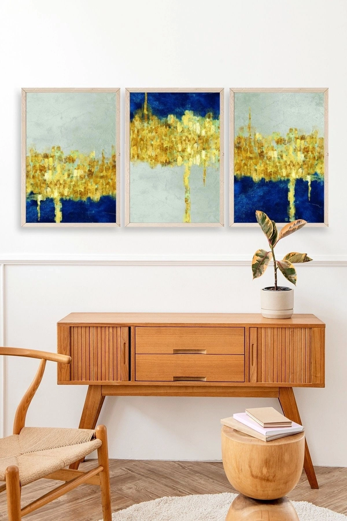 Ünlü Tablolar Üçlü Ahşap Çerçeveli Tablo 23 x 30
