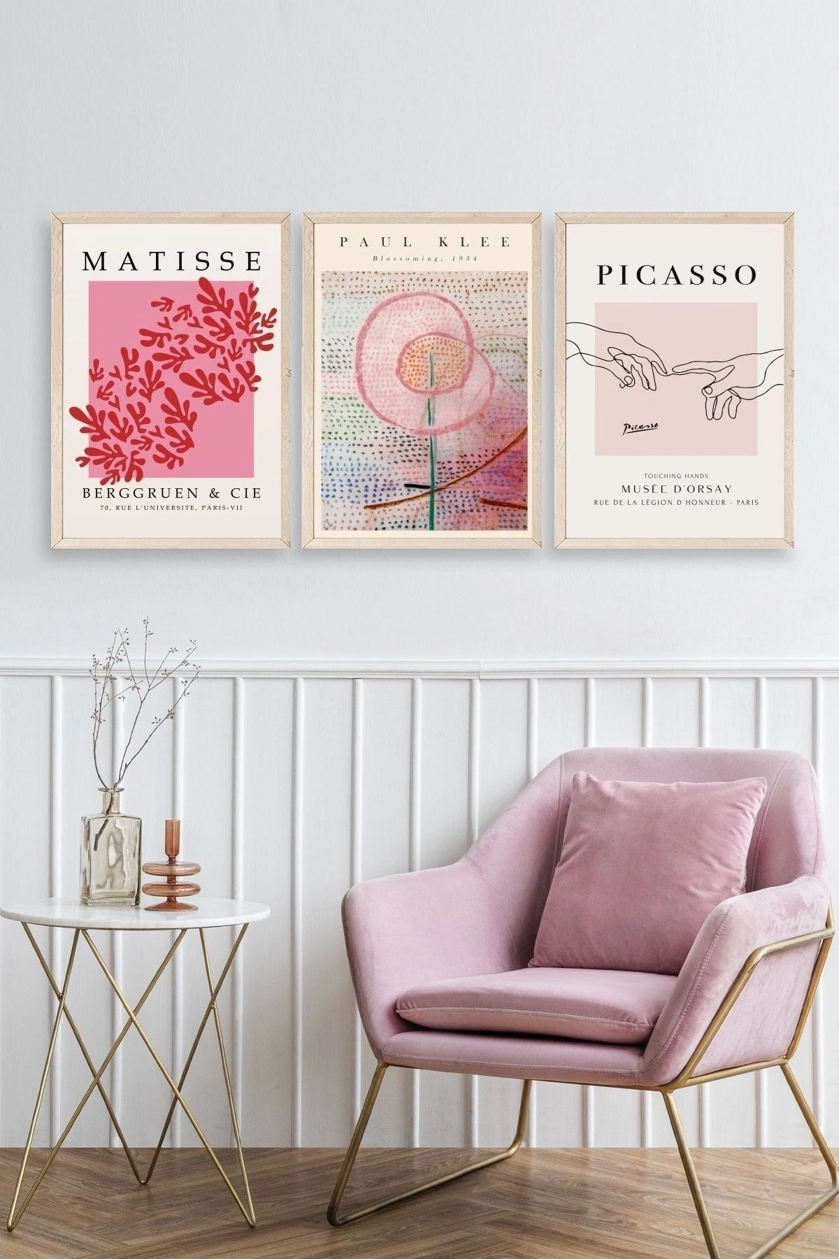 Ünlü Tablolar Üçlü Ahşap Çerçeveli Tablo 23 x 30