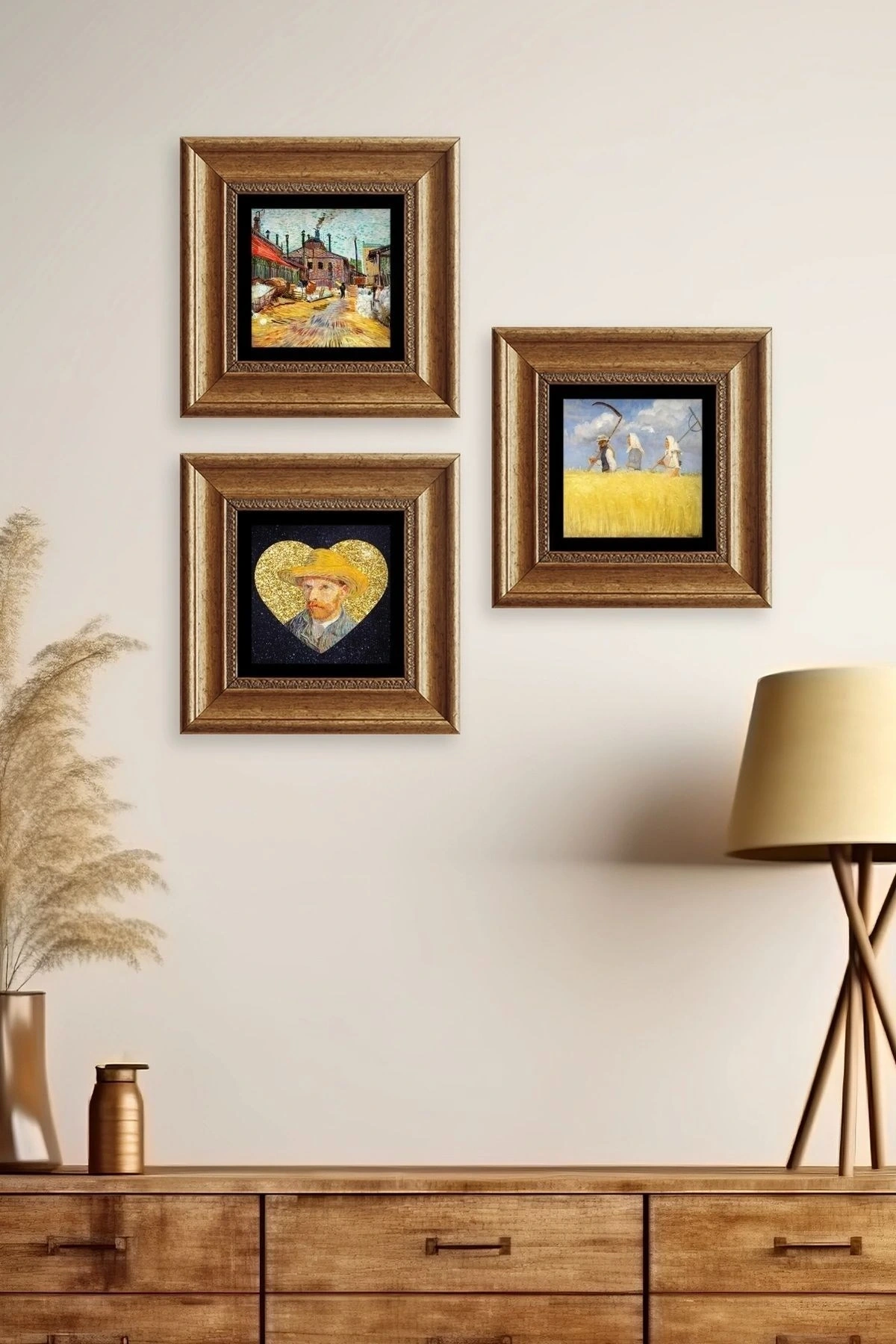 Van Gogh 3 lü Set Çerçeveli Taş Tablo 20 cm