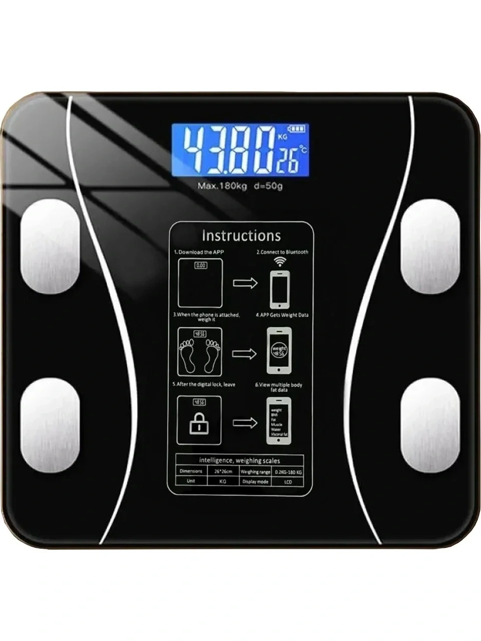 Dijital Bluetooth Baskül - Yağ Su Kas Vücut Kitle Endeksi Kilo Ölçer Tartı Vücut Analiz Cihazı Siyah