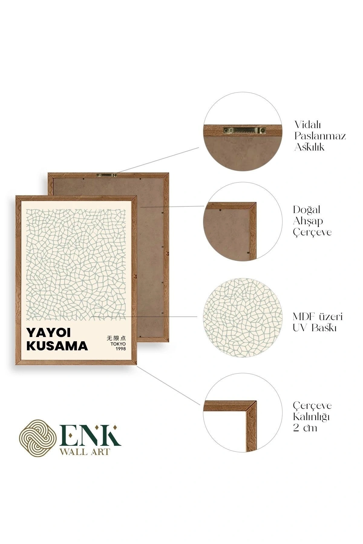 Tablolarımız gerçek ahşap çerçevelidir, çerçeve görünümlü değildir. ; ENK Wall Art Olarak Ahşap Çerçeveli Tablolar Üretiyoruz. ; Tablolarımız tek parça, 3 Parça, 5 Parça ve daha çok kategoride tasarımcılarımız tarafından ev ve ofisleriniz duvarları süslemek için tasarlanmaktadır. ; Ahşap Çerçeveli Duvar Tabloları ile yaşam alanlarınıza yepyeni bir görünüm kazandırın. ; Yıllarca dayanacağından emin olduğumuz sağlam çerçevelere sahip yüksek kaliteli ahşaptan üretilmiştir. ; İster bir köşeyi süslemek isteyin, ister evinizi yenilemek , bu ahşap tablolar herhangi bir yaşam alanına stil ve işlev getirecektir. ; Duvara kolay bir şekilde monte edilir. ; Uzun ömürlü kullanım için sağlam ahşap çerçeveden yapılmış, dayanıklı ve güçlü. ; Duvara monte edilebilir tasarımı, yaşam alanlarında veya yatak odalarında duvara kolayca asılmasını sağlar. ; Pürüzsüz üst yüzeyi temiz kalmayı kolaylaştırır. ; Herhangi bir stile uyacak şekilde çeşitli renklerde gelir. ; Kolay yeniden düzenleme için hafif ve portatif. ; Küçük oturma odaları veya dar alanlar için mükemmel boyut. ; Eve taşınma hediyesi olarak idealdir. ; Herhangi bir evin dekorunu süslemek için harika bir yol. ; Herhangi bir modern veya çağdaş iç tasarıma mükemmel bir katkı. ; Tablo içi 3 mm mdf (ahşap) malzeme üzeri uv baskıdır. ; Renkler canlı ve solma yapmaz. ; Kırılma, bükülme ve çizilmeye karşı dayanıklıdır.;