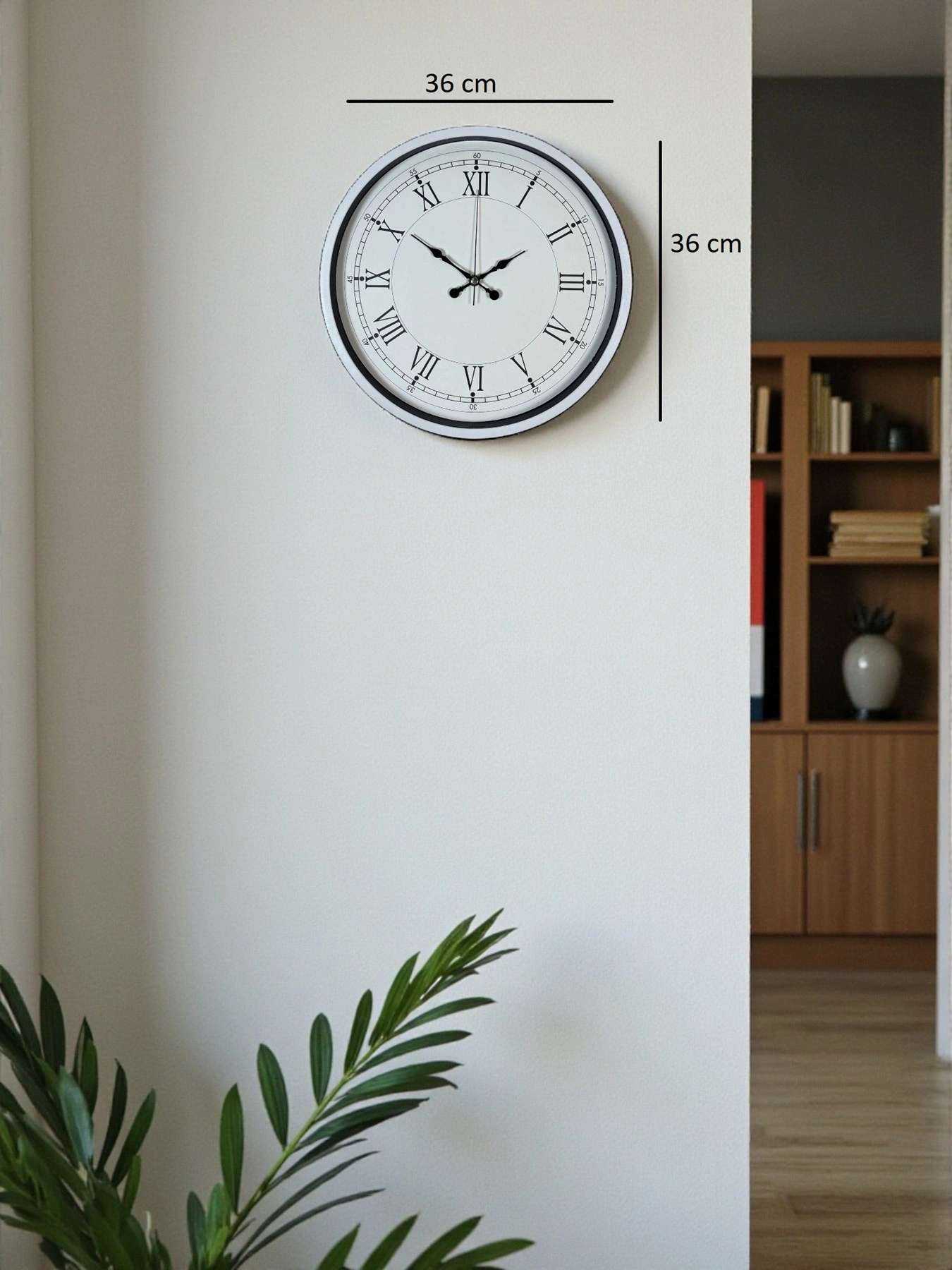 Zamansız şıklığı sevenler için tasarlanan 36 cm Beyaz Duvar Saati, ferah görünümü ve klasik detaylarıyla her dekorasyona kolayca uyum sağlayan estetik bir modeldir. Minimalist beyaz çerçevesi ve sade kadranı, bulunduğu ortama hem aydınlık hem de zarif bir hava katar. Büyük ve belirgin Roma rakamları sayesinde saati uzak mesafeden dahi kolayca okuyabilirsiniz.