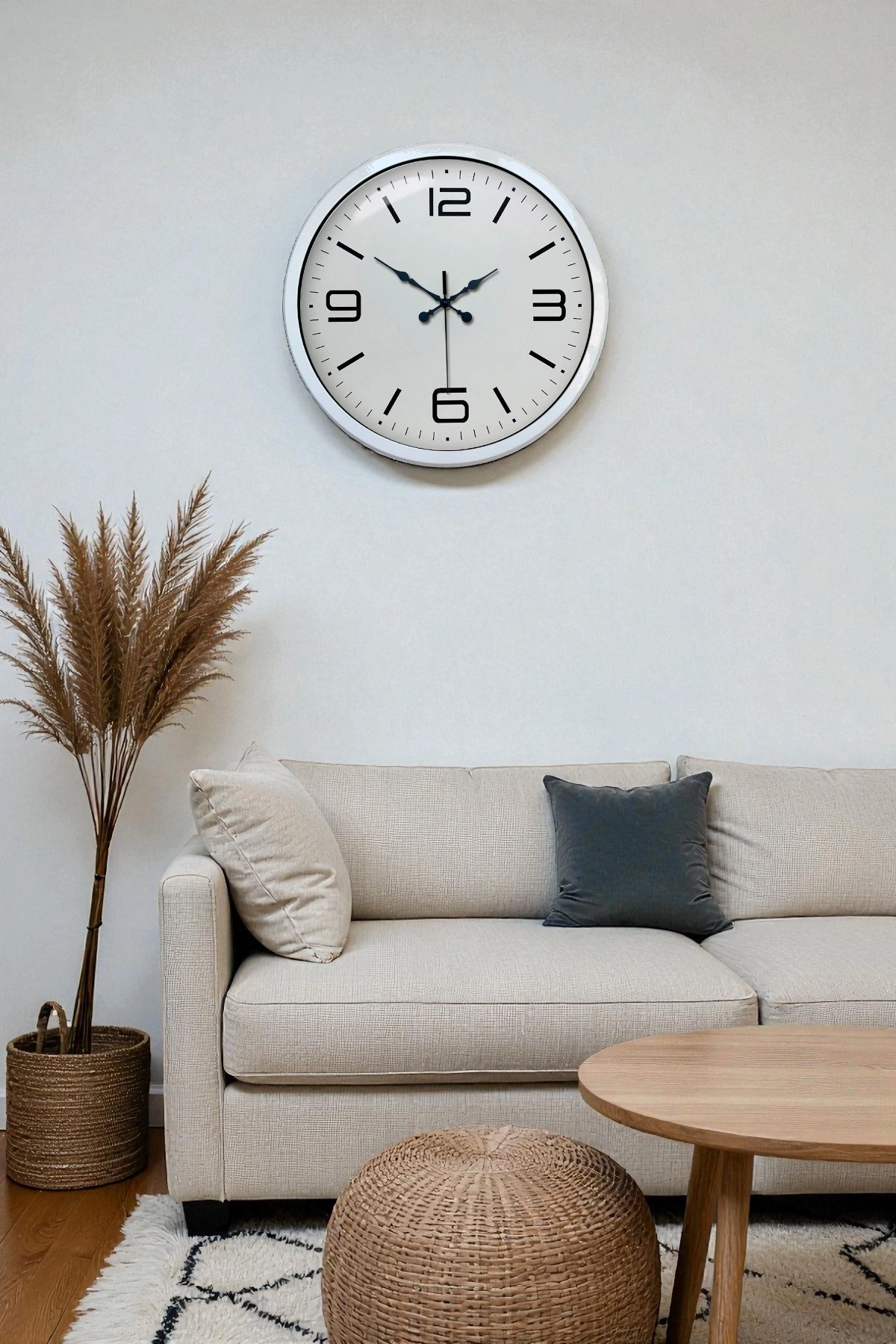Şık ve modern tasarımıyla dikkat çeken 40 cm beyaz fırın boyalı duvar saatimiz, sessiz akar saniye mekanizmasıyla konforlu bir kullanım sunar. Gerçek cam koruma paneli sayesinde uzun ömürlü ve dayanıklıdır. Estetik görünümüyle hem ev hem de iş yerleri için ideal bir dekoratif üründür.