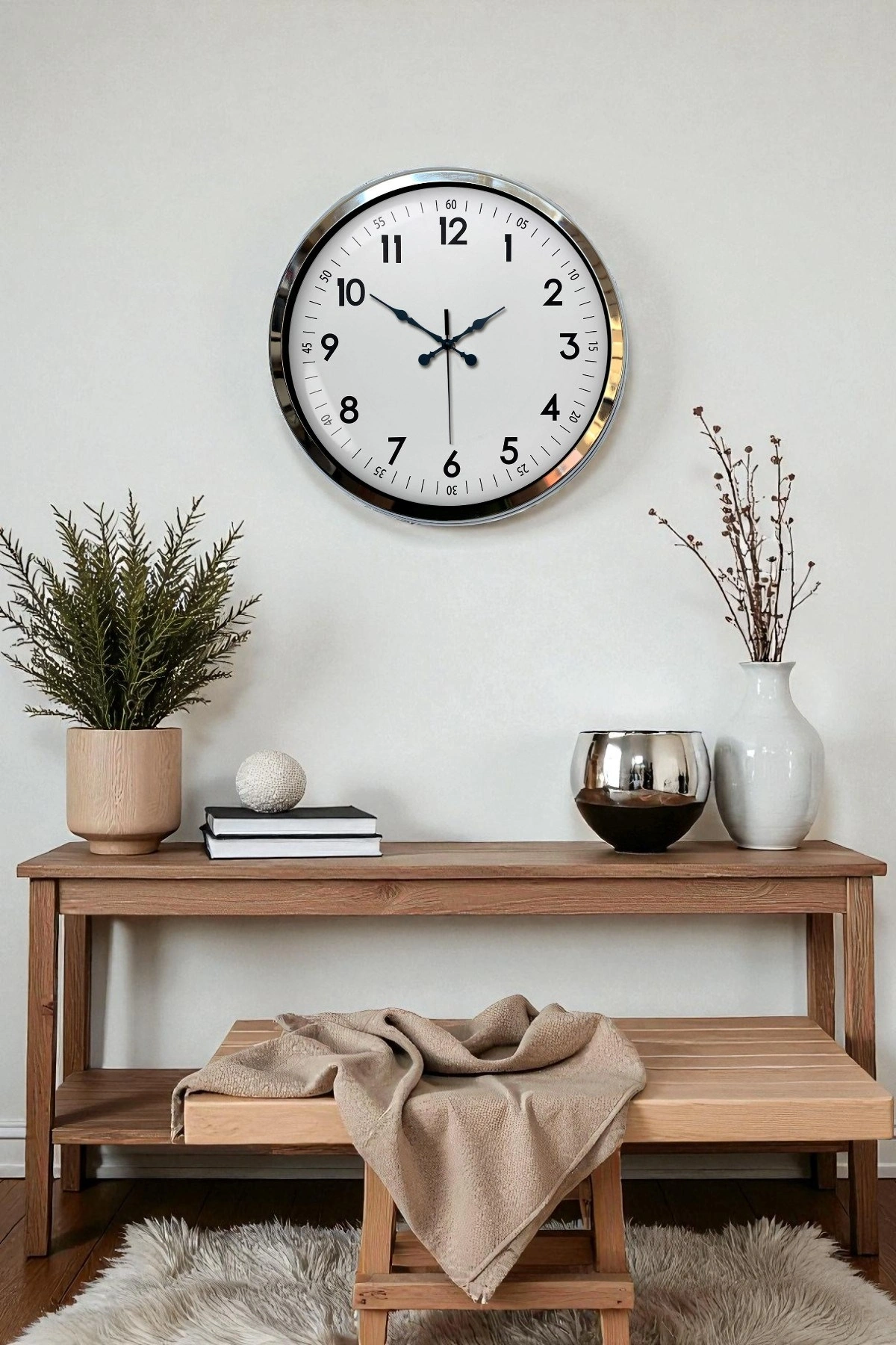Modern Klasik 40 Cm Krom Metal Duvar Saati