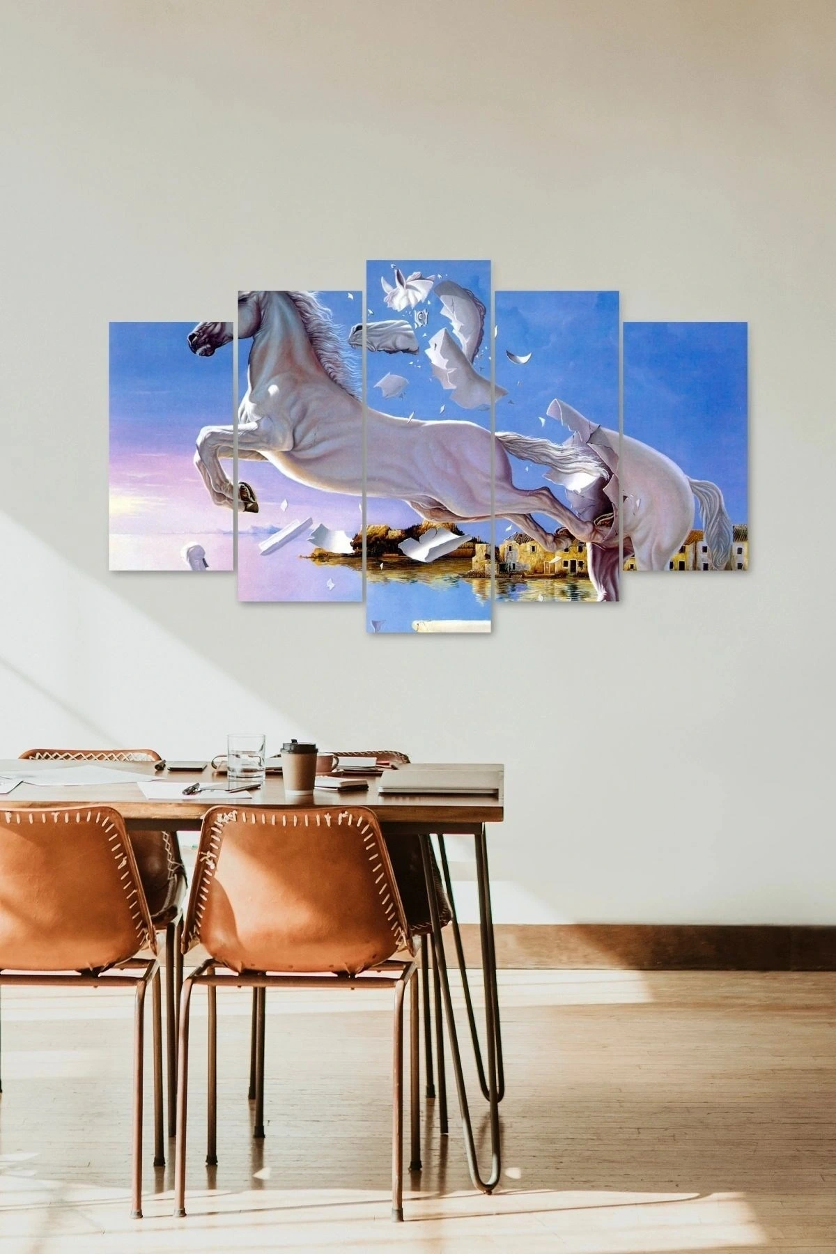 Beyaz Atlar 5 Parçalı Mdf Tablo 60 x 100