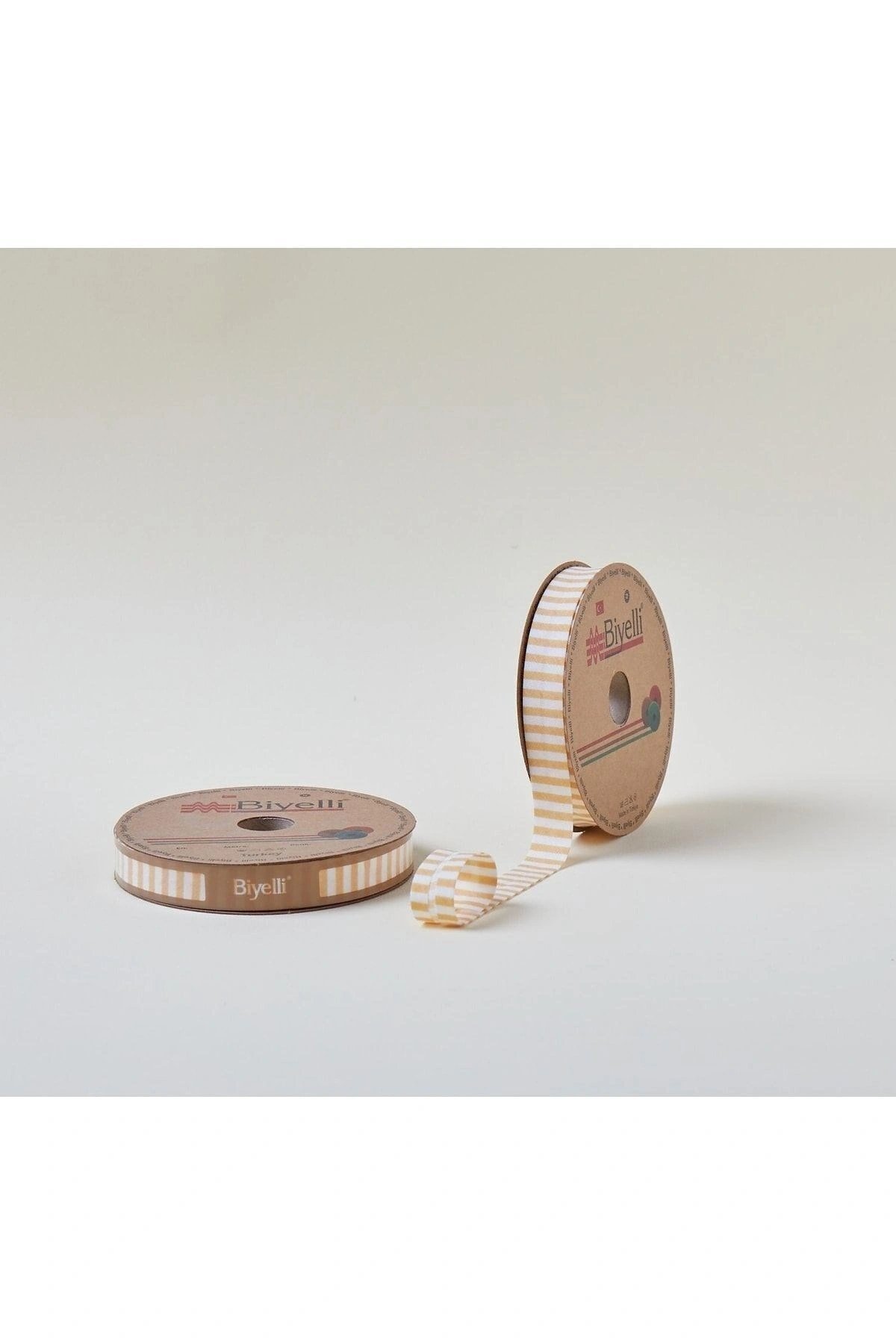 Biye Kalın Çizgili Katlı F06 Sarı 2 Cm 25 Metre %65 Koton %35 Polyester