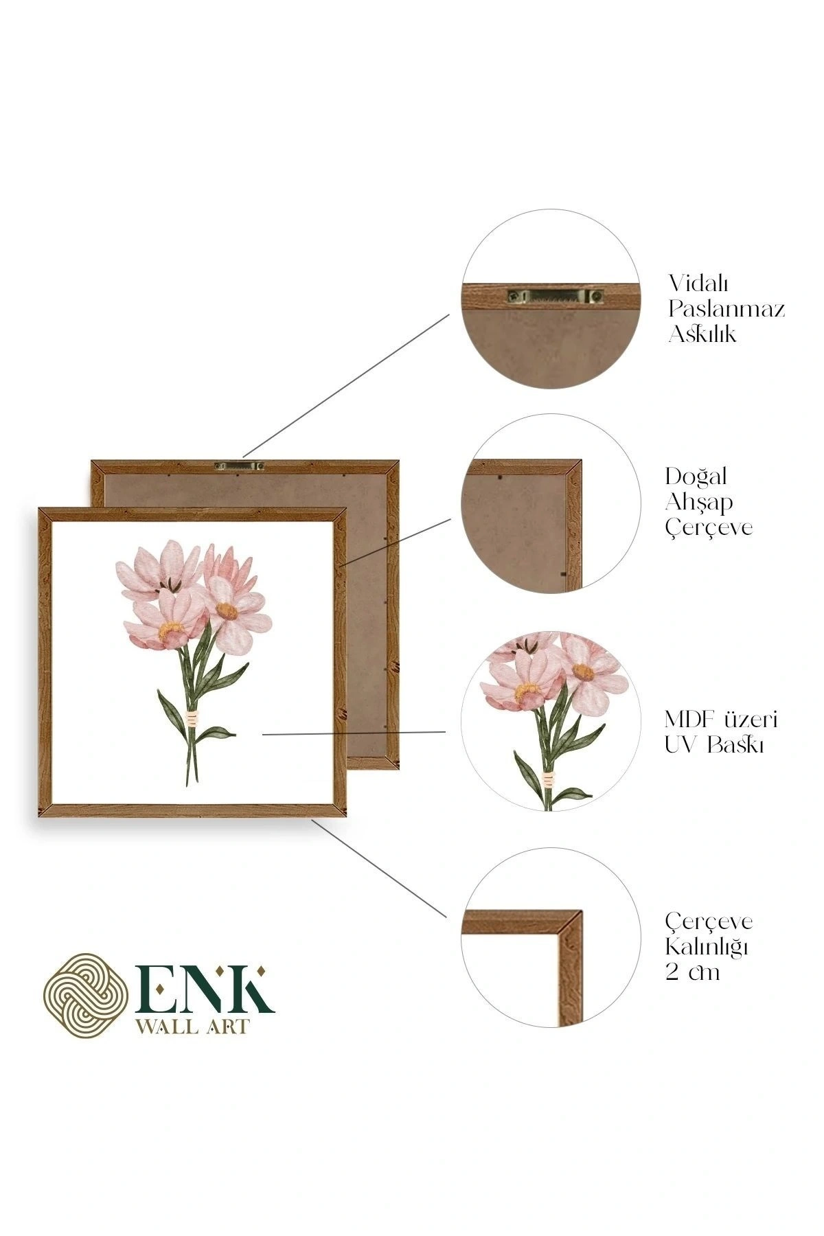 Tablolarımız gerçek ahşap çerçevelidir, çerçeve görünümlü değildir. ; ENK Wall Art Olarak Ahşap Çerçeveli Tablolar Üretiyoruz. ; Tablolarımız tek parça, 3 Parça, 5 Parça ve daha çok kategoride tasarımcılarımız tarafından ev ve ofisleriniz duvarları süslemek için tasarlanmaktadır. ; Ahşap Çerçeveli Duvar Tabloları ile yaşam alanlarınıza yepyeni bir görünüm kazandırın. ; Yıllarca dayanacağından emin olduğumuz sağlam çerçevelere sahip yüksek kaliteli ahşaptan üretilmiştir. ; İster bir köşeyi süslemek isteyin, ister evinizi yenilemek , bu ahşap tablolar herhangi bir yaşam alanına stil ve işlev getirecektir. ; Duvara kolay bir şekilde monte edilir. ; Uzun ömürlü kullanım için sağlam ahşap çerçeveden yapılmış, dayanıklı ve güçlü. ; Duvara monte edilebilir tasarımı, yaşam alanlarında veya yatak odalarında duvara kolayca asılmasını sağlar. ; Pürüzsüz üst yüzeyi temiz kalmayı kolaylaştırır. ; Herhangi bir stile uyacak şekilde çeşitli renklerde gelir. ; Kolay yeniden düzenleme için hafif ve portatif. ; Küçük oturma odaları veya dar alanlar için mükemmel boyut. ; Eve taşınma hediyesi olarak idealdir. ; Herhangi bir evin dekorunu süslemek için harika bir yol. ; Herhangi bir modern veya çağdaş iç tasarıma mükemmel bir katkı. ; Tablo içi 3 mm mdf (ahşap) malzeme üzeri uv baskıdır. ; Renkler canlı ve solma yapmaz. ; Kırılma, bükülme ve çizilmeye karşı dayanıklıdır.;
