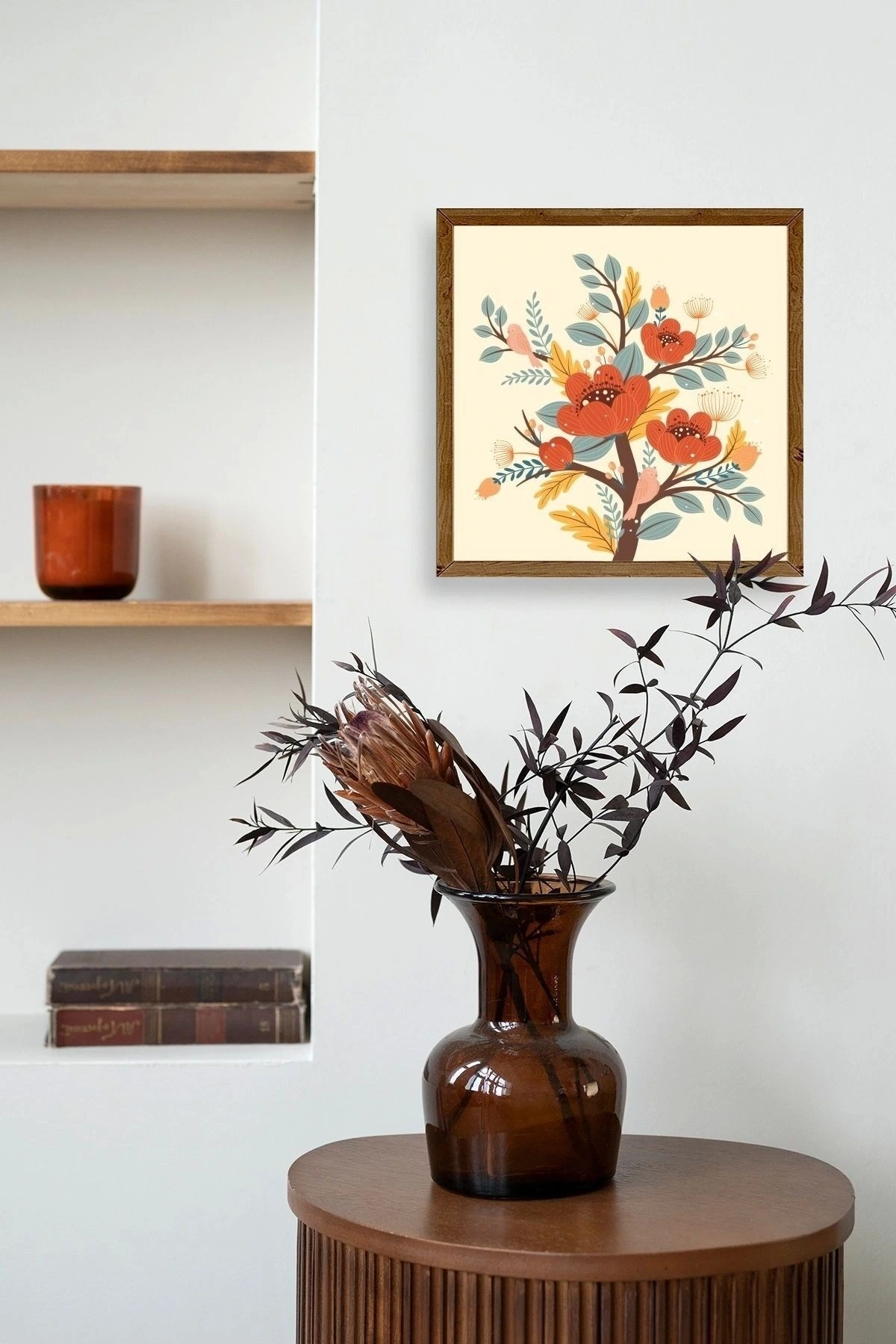 Çiçek Ahşap Çerçeveli Tablo 50 x 50