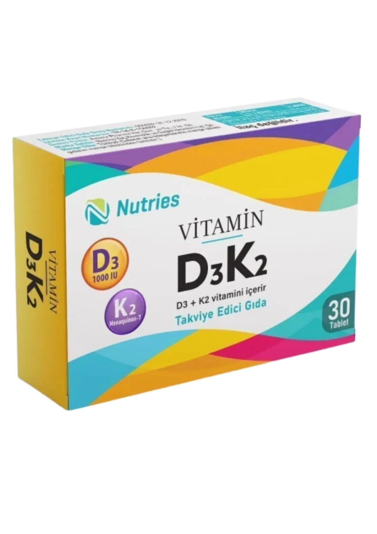 Nutries D3K2 Tablet ürünü için yazılar ve tablo: