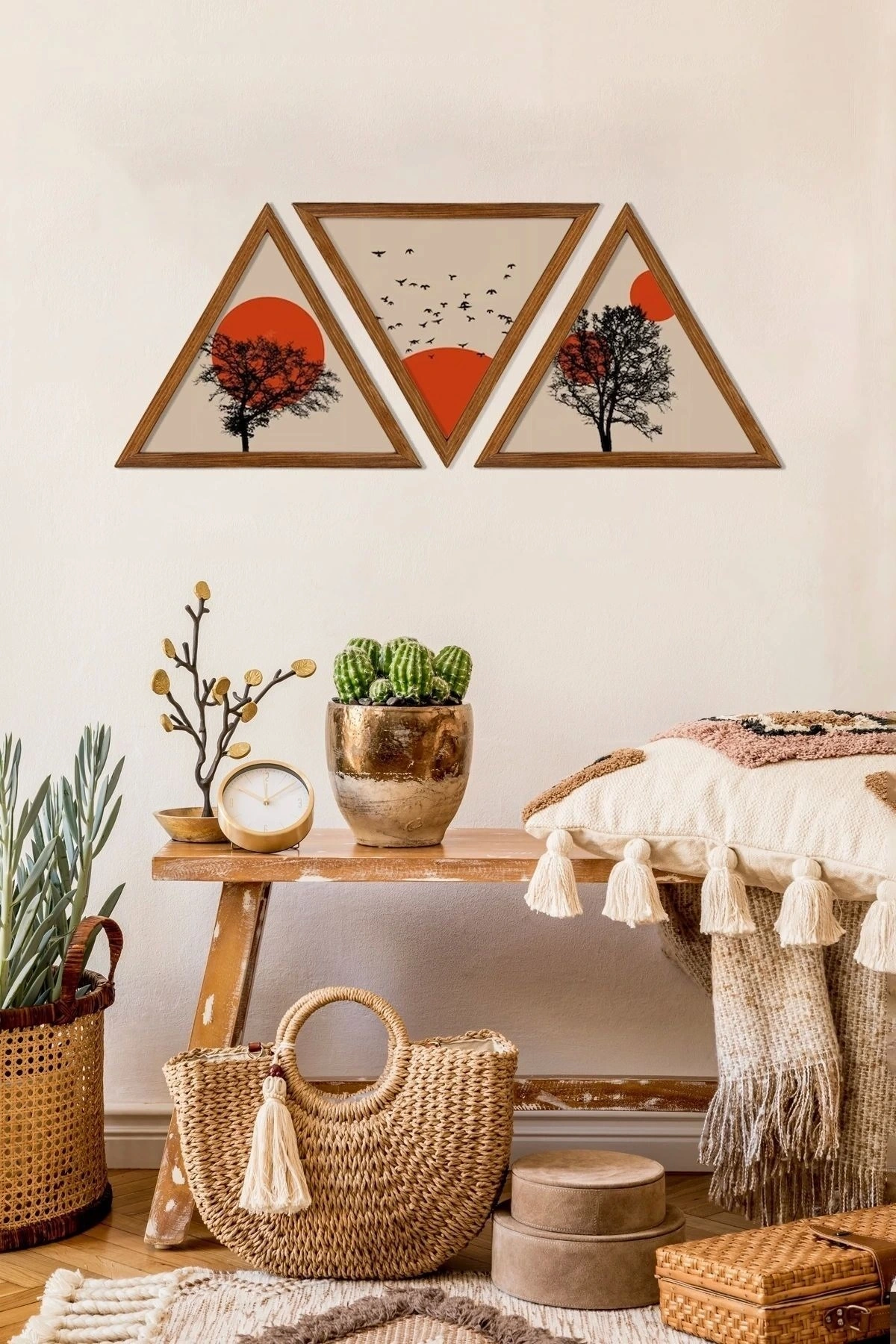Dekoratif Üçgen Çerçeveli Ahşap Tablo Set 35 x 40