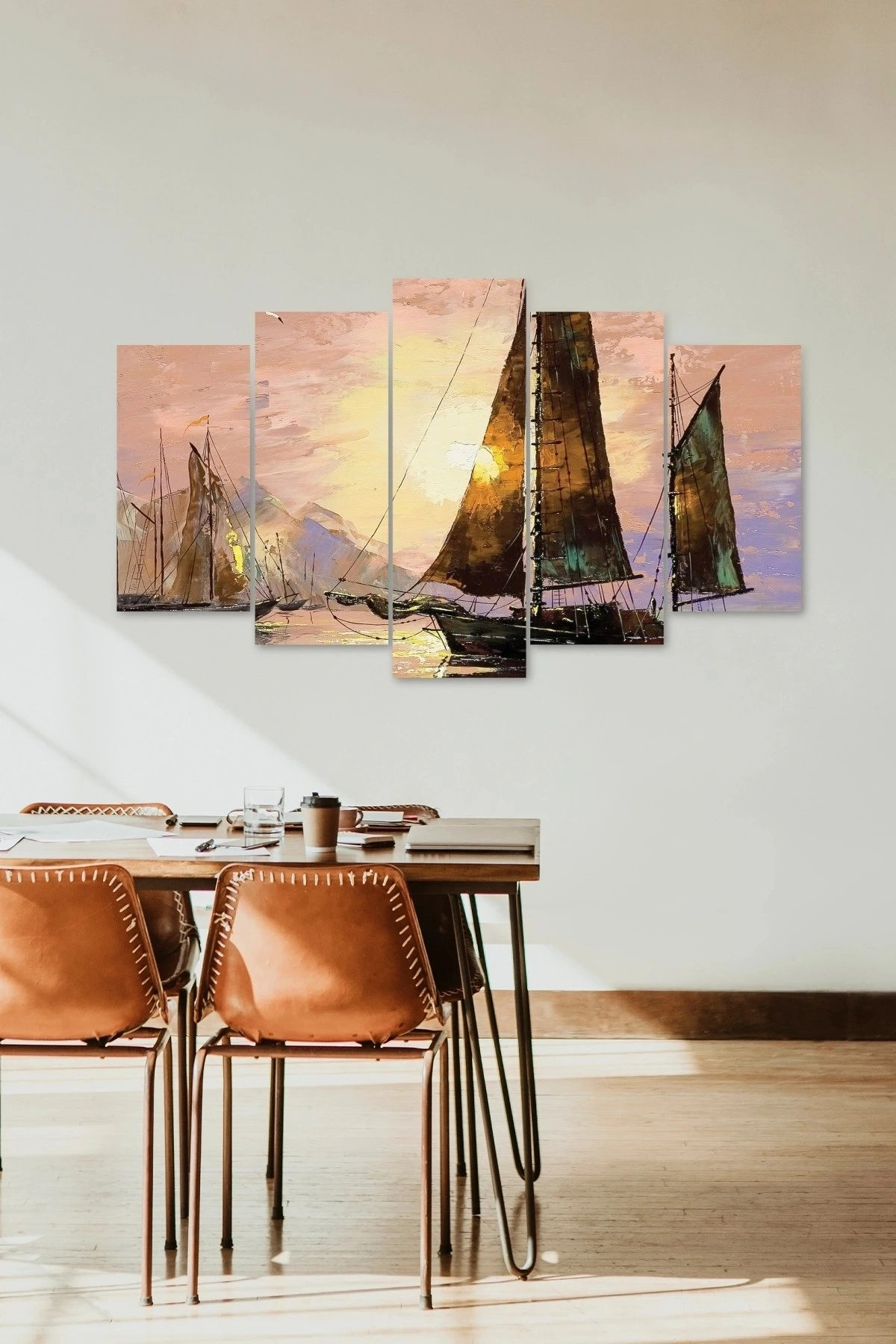 Modern tasarımıyla evinizin dekorasyonuna şıklık katan deniz manzarası 5 parçalı MDF tablo, ahşap malzemesiyle dayanıklılığı ve estetiği bir arada sunar; Deniz manzarası temalı bu tablo, evinizin duvarlarınıza huzur veren bir atmosfer katarken, modern stil sahibi dekorasyon anlayışınıza uyum sağlar;