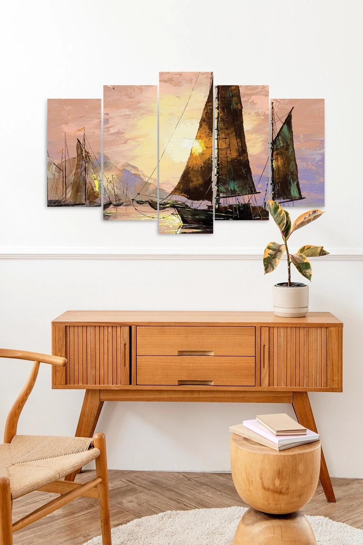 Deniz Manzarası 5 Parçalı Mdf Tablo 60 x 100