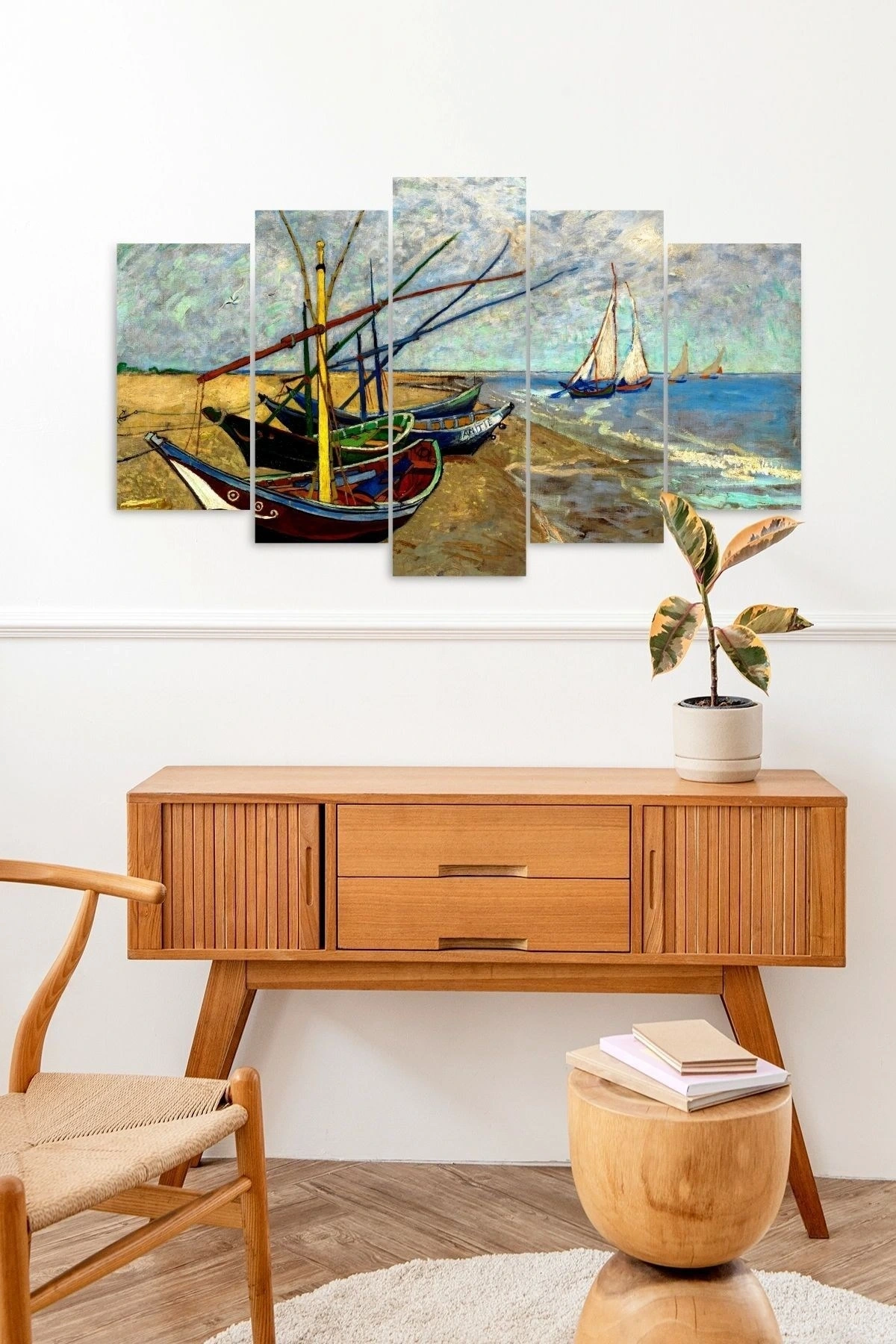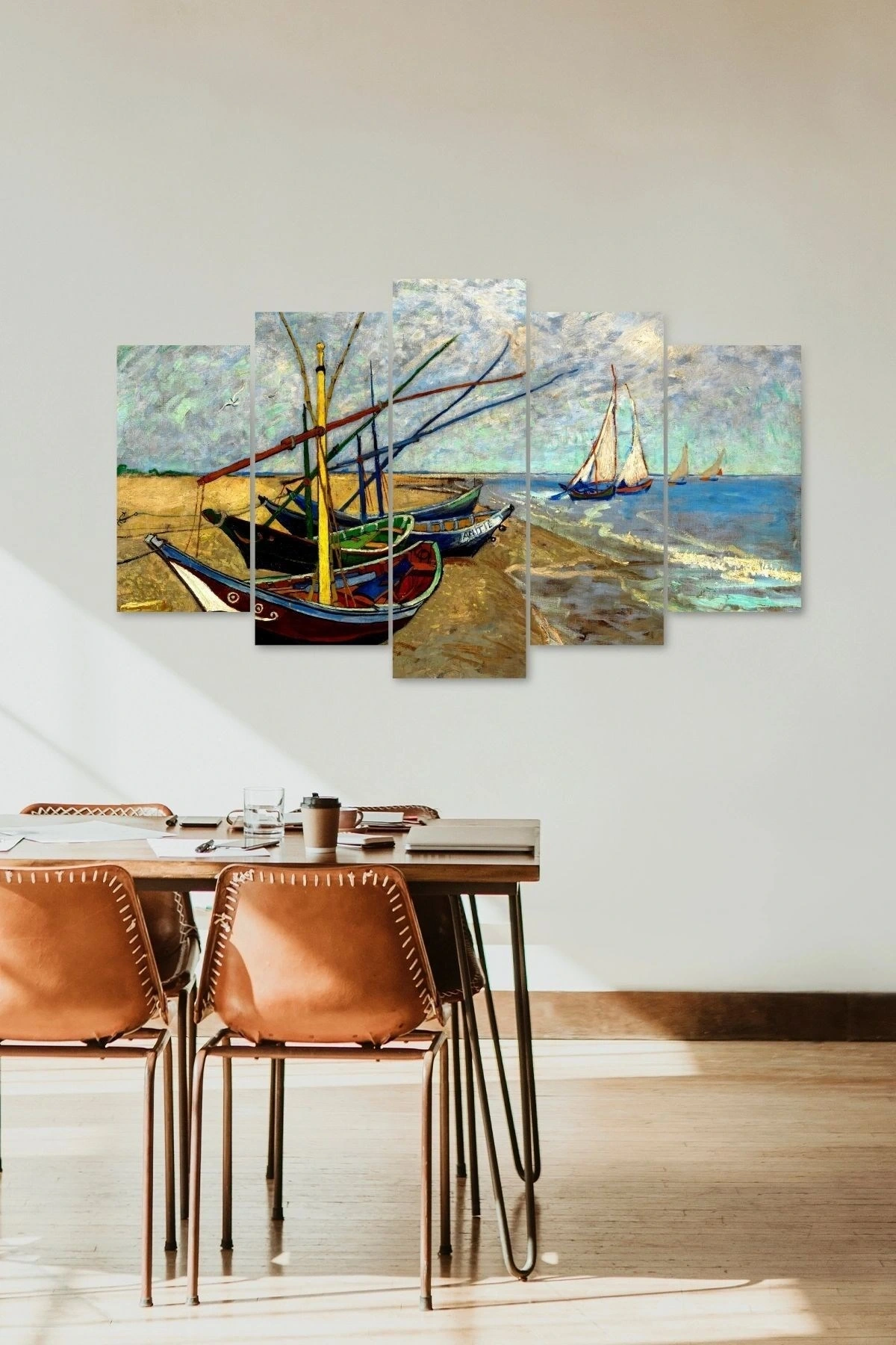 Modern tasarımıyla evinizin dekorasyonuna şıklık katan Deniz ve Kayıklar 5 parçalı MDF tablo, mekanınıza çağdaş bir hava katıyor; Dayanıklı ahşap malzemesi sayesinde uzun ömürlü kullanım sunar ve estetik görünümüyle göz alıcı bir detay olarak öne çıkar;