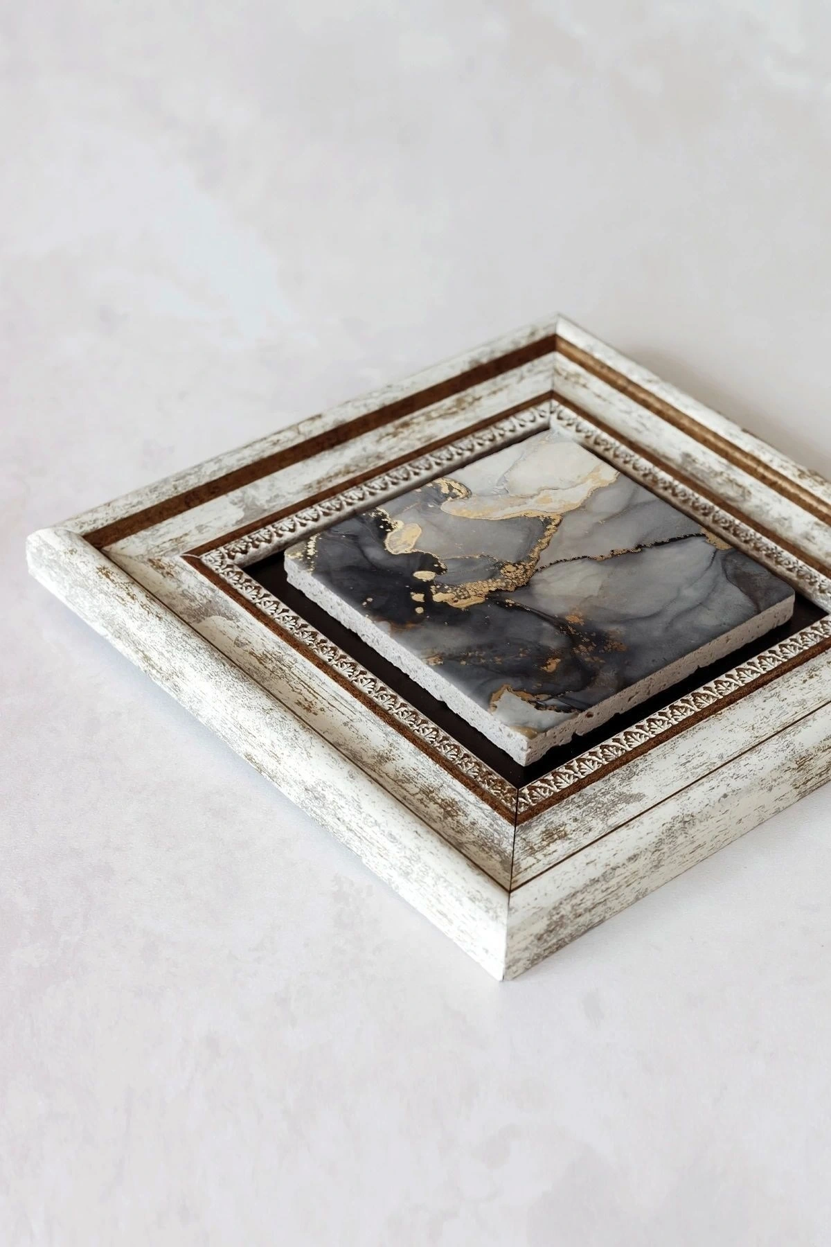 Desenli Çerçeveli Taş Tablo , Çerçeveli Taş Duvar Dekoru-enkcrcvtbl-00176 20 cm