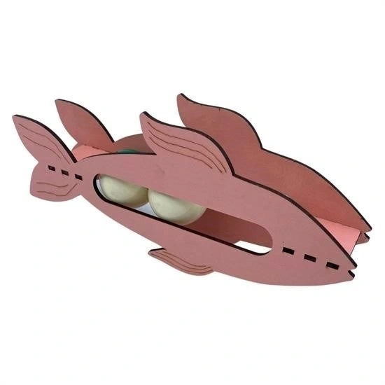 Bu ahşap balık oyuncağının içinde yuvarlanan iki topun sesi kedileri meraklandırır ve dikkatlerini toplar