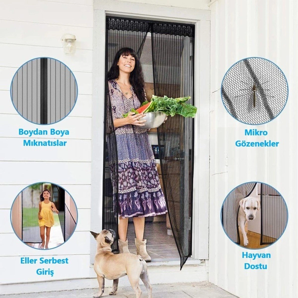 Yaz aylarında balkon ev yazlık dükkan kapıları rahatça açılsın ve uçan haşereleri (sinek-sivrisinek-arı) odalarından uzak tutabilsinler diye otomatik kapanan mıknatıslı kapı sinekliği
