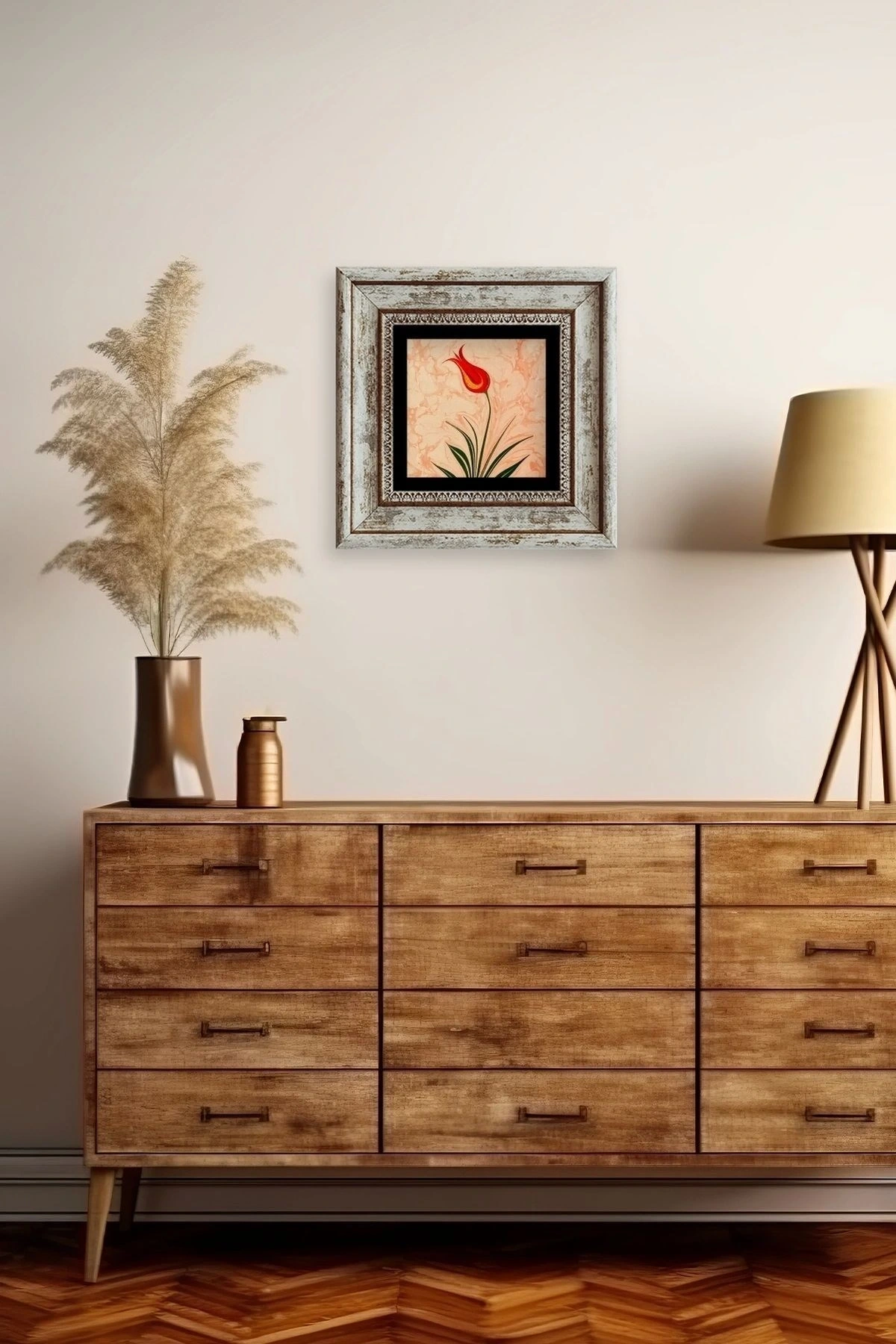 Ebru Lale Çerçeveli Taş Tablo 20 cm