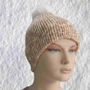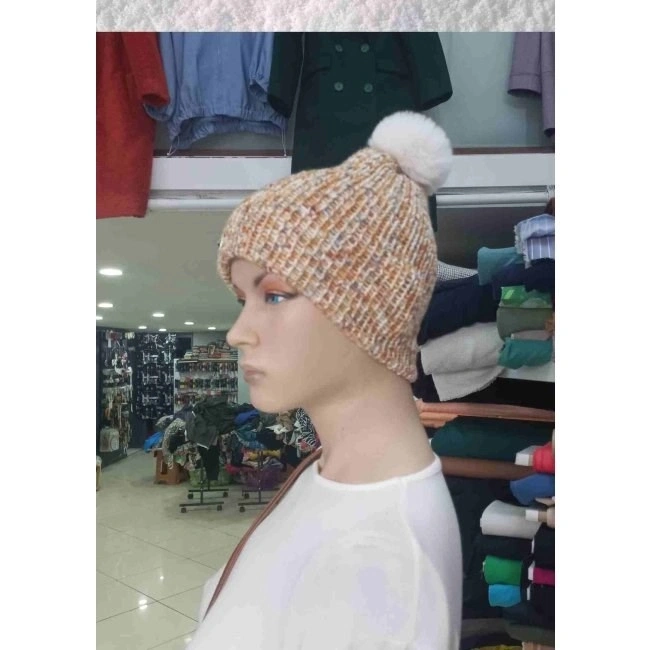 El Örgüsü Doğal Yün Ve Akrilik Karışımlı Sıcacık Kış Beresi Açık Kahve Karışımlı Renk