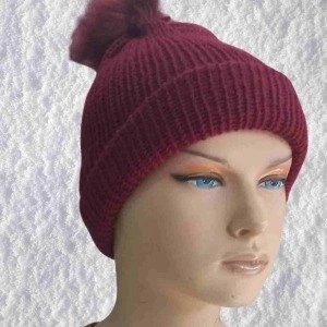 El Örgüsü Doğal Yün Ve Akrilik Karışımlı Sıcacık Kış Beresi Bordo Renk