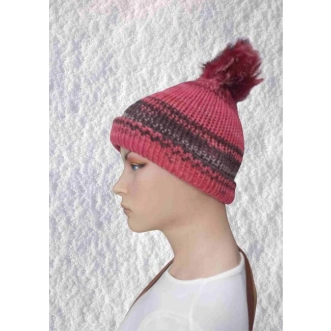 El Örgüsü Doğal Yün Ve Akrilik Karışımlı Sıcacık Kış Beresi Koyu Pembe Karışık