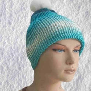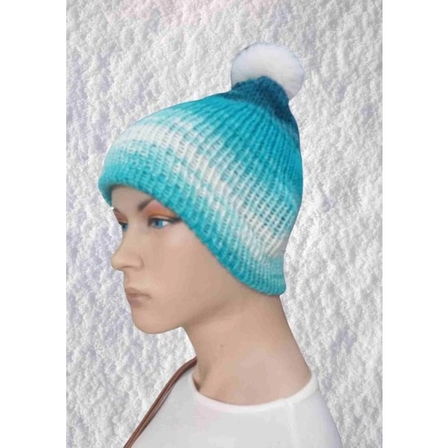 El Örgüsü Doğal Yün Ve Akrilik Karışımlı Sıcacık Kış Beresi Mavi Karışık Renk