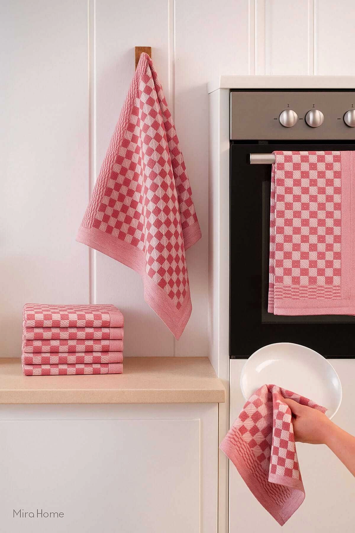 10 lu Dama Desenli Mutfak Kurulama Bezi 50x70 Cm Kırmızı