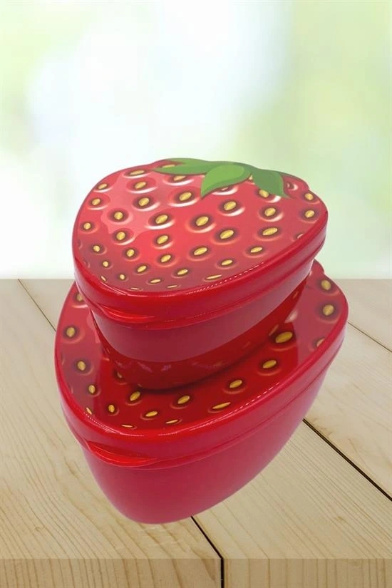 2'li İç İçe Geçebilen Çilek Model Saklama ve Beslenme Kabı Seti (550 ml + 250 ml) (5365)