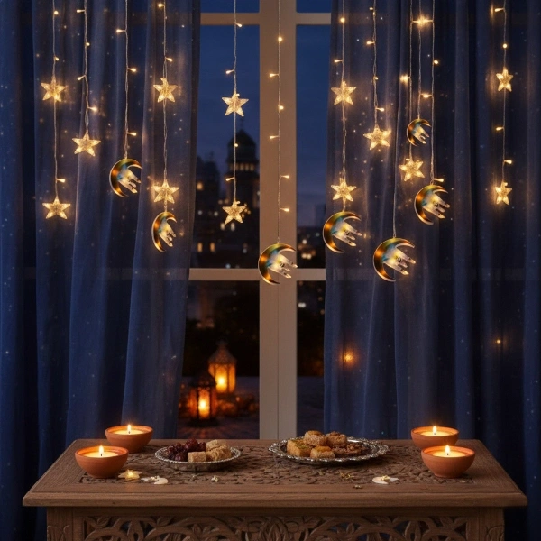 3 mt Fişli Hilal Cami Yıldız Ramazan Perde LED