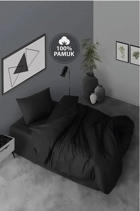 3 PARÇA TEK KİŞİLİK SİYAH NEVRESİM TAKIMI