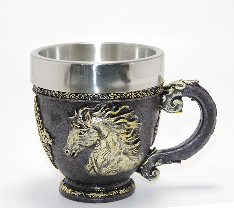 3D Kabartmalı At Büstü Paslanmaz Çelik Kupa Bardak